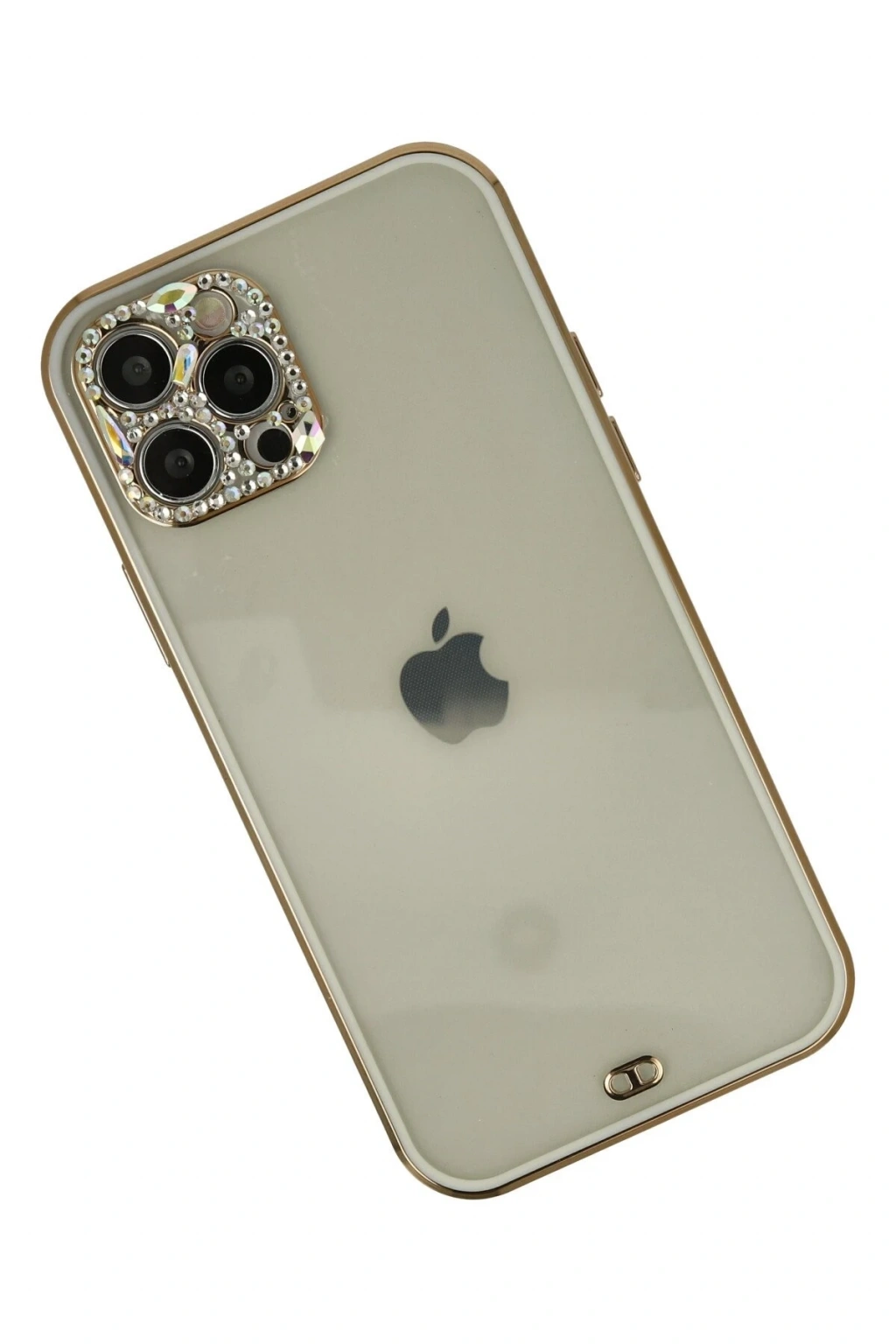 iPhone 12 Pro Max Kılıf Liva Taşlı Silikon - Beyaz