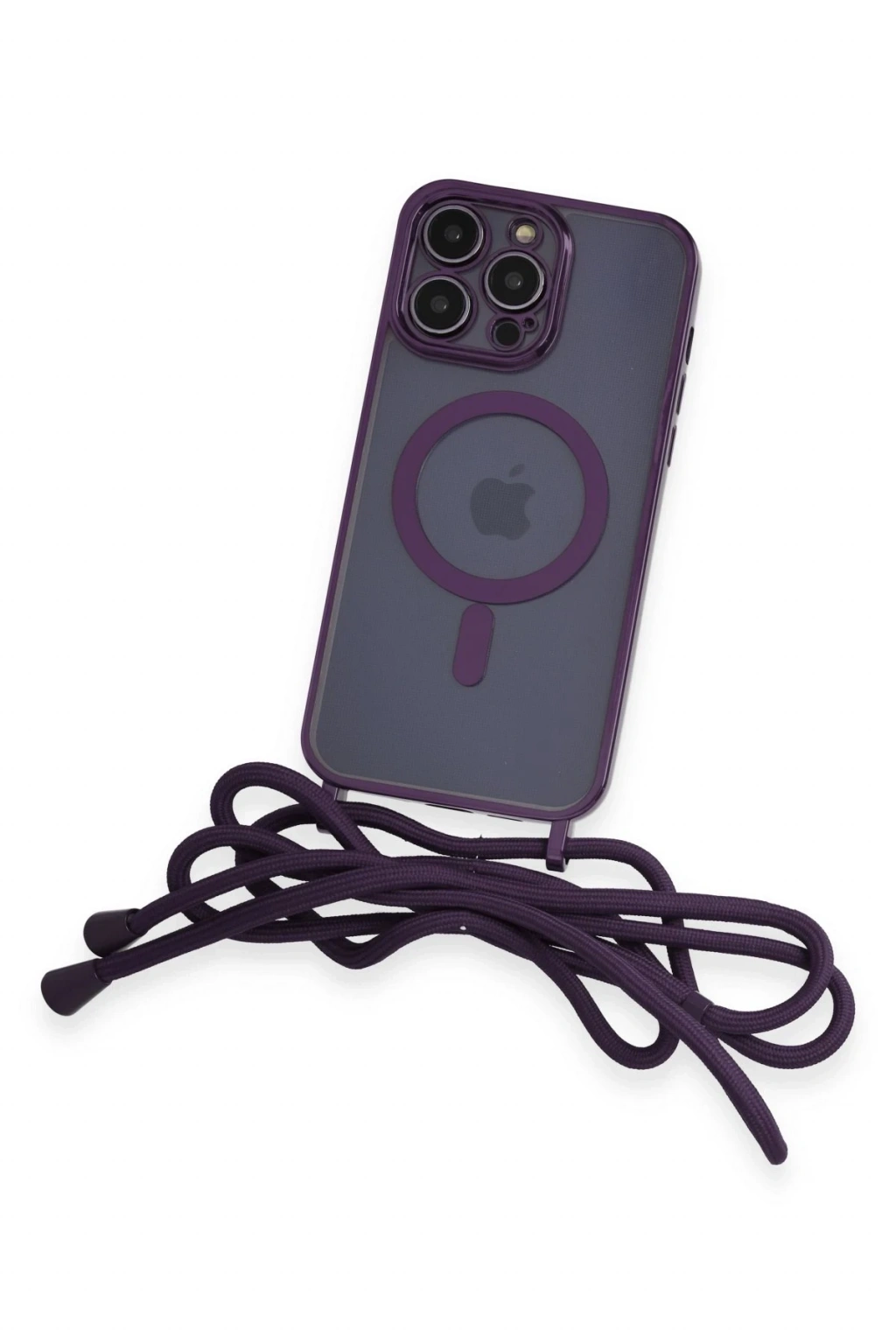 iPhone 13 Pro Kılıf Divo Lazer Askılı Magsafe Kapak - Derin Mor