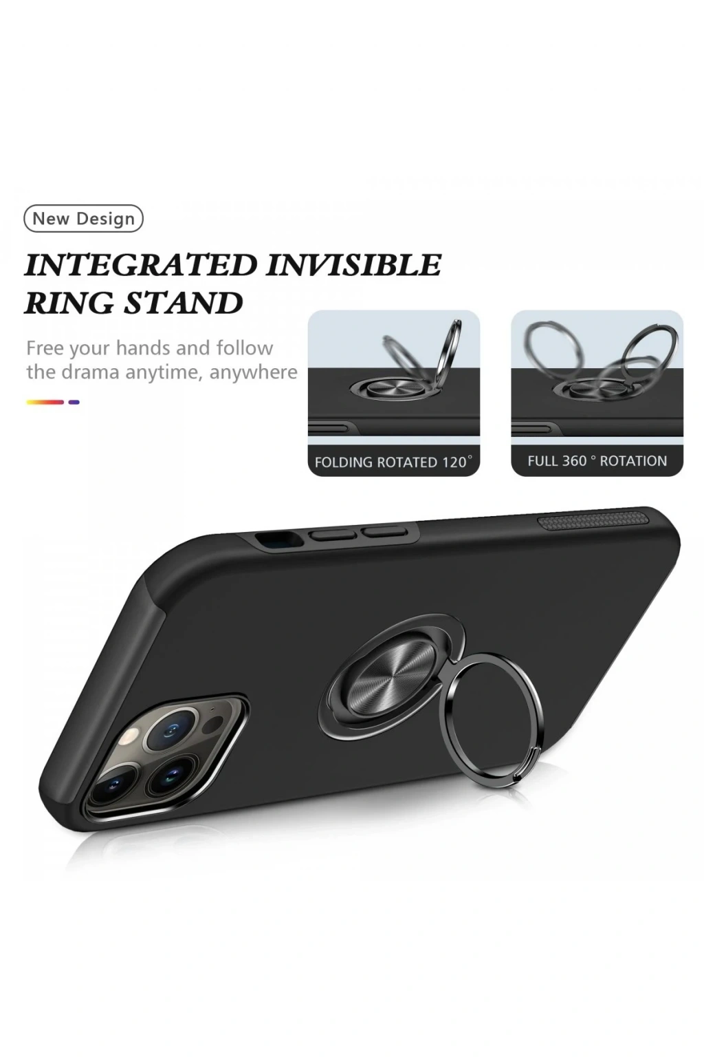 iPhone 13 Pro Kılıf Elit Yüzüklü Kapak - Siyah