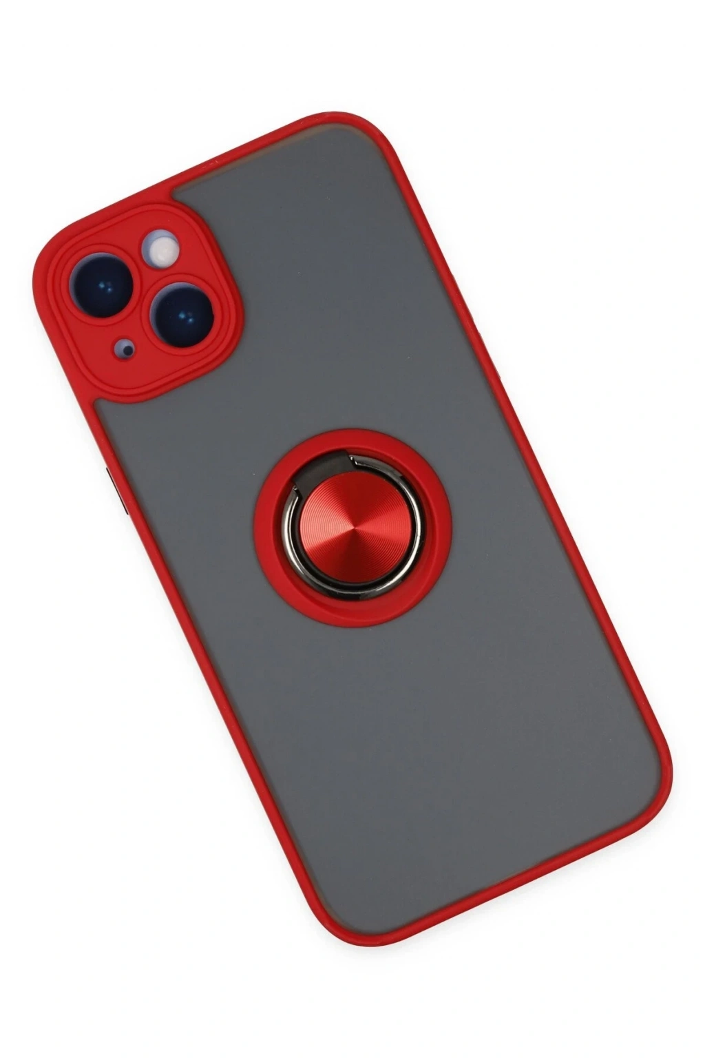 iPhone 14 Kılıf Montreal Yüzüklü Silikon Kapak - Kırmızı