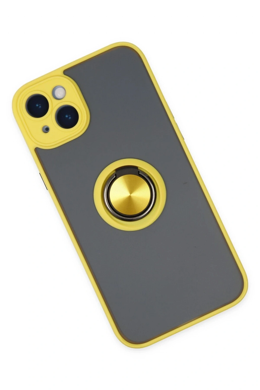iPhone 14 Kılıf Montreal Yüzüklü Silikon Kapak - Sarı
