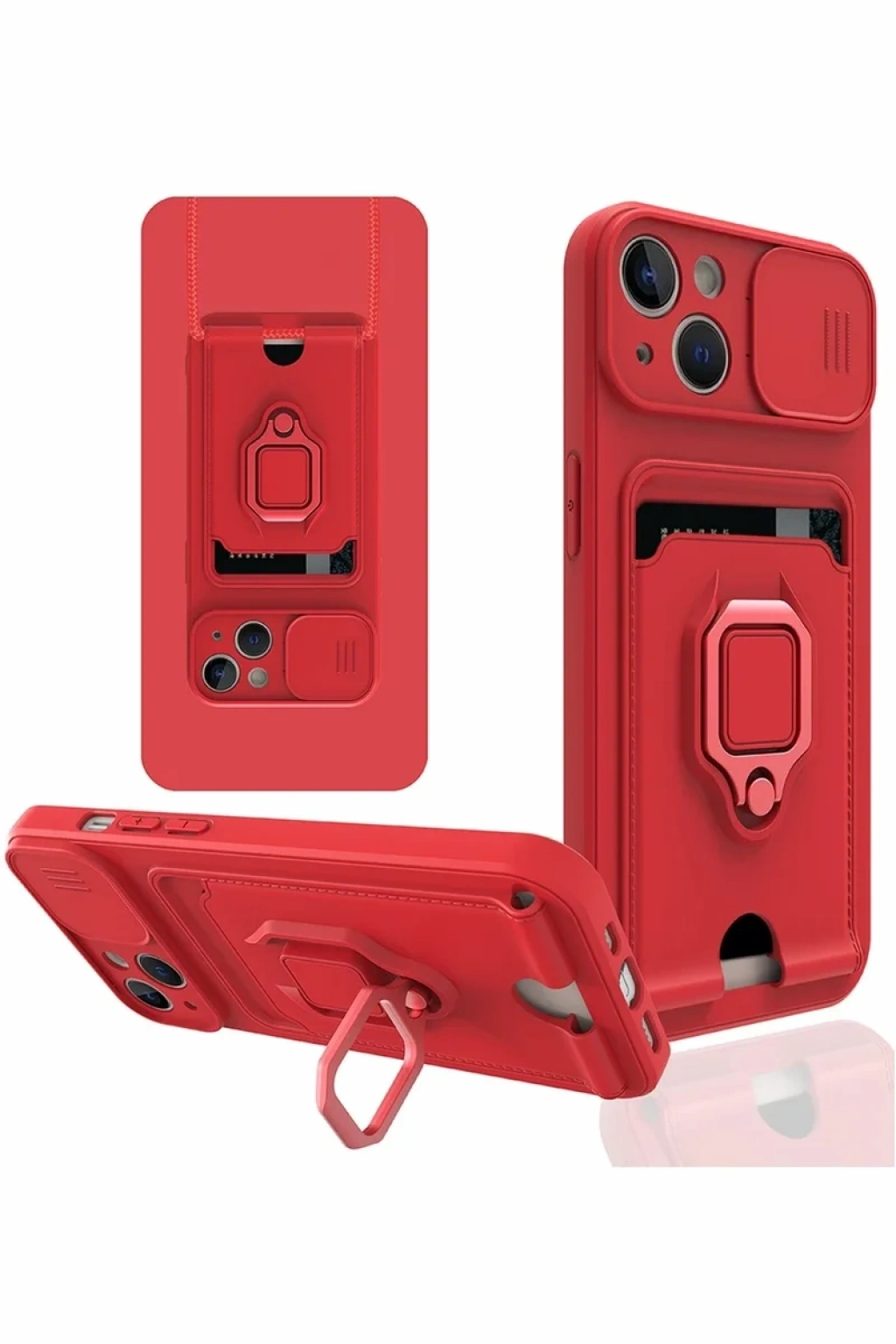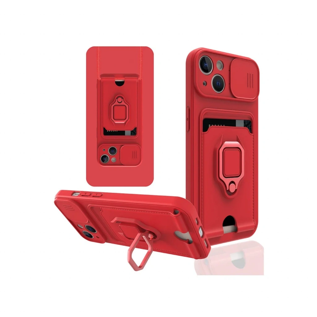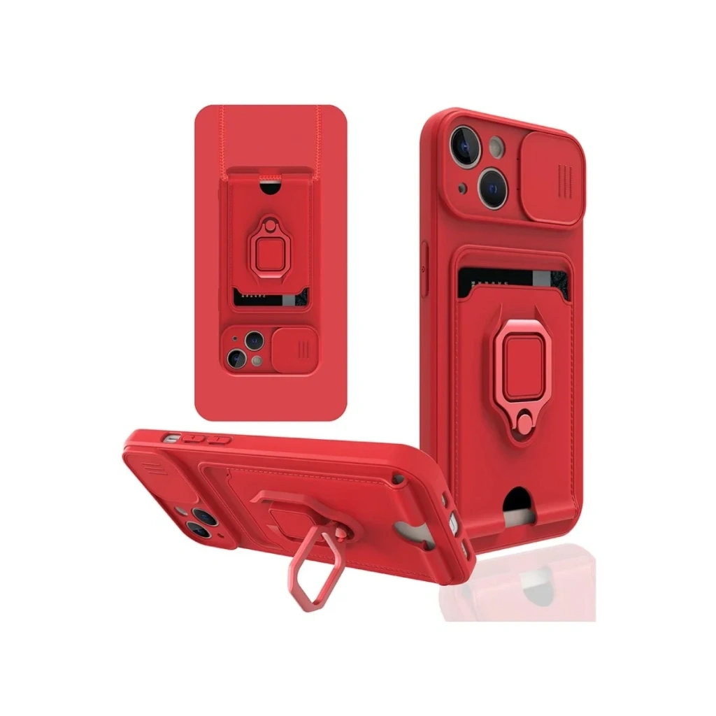 iPhone 14 Kılıf Zuma Kartvizitli Yüzüklü Silikon - Kırmızı