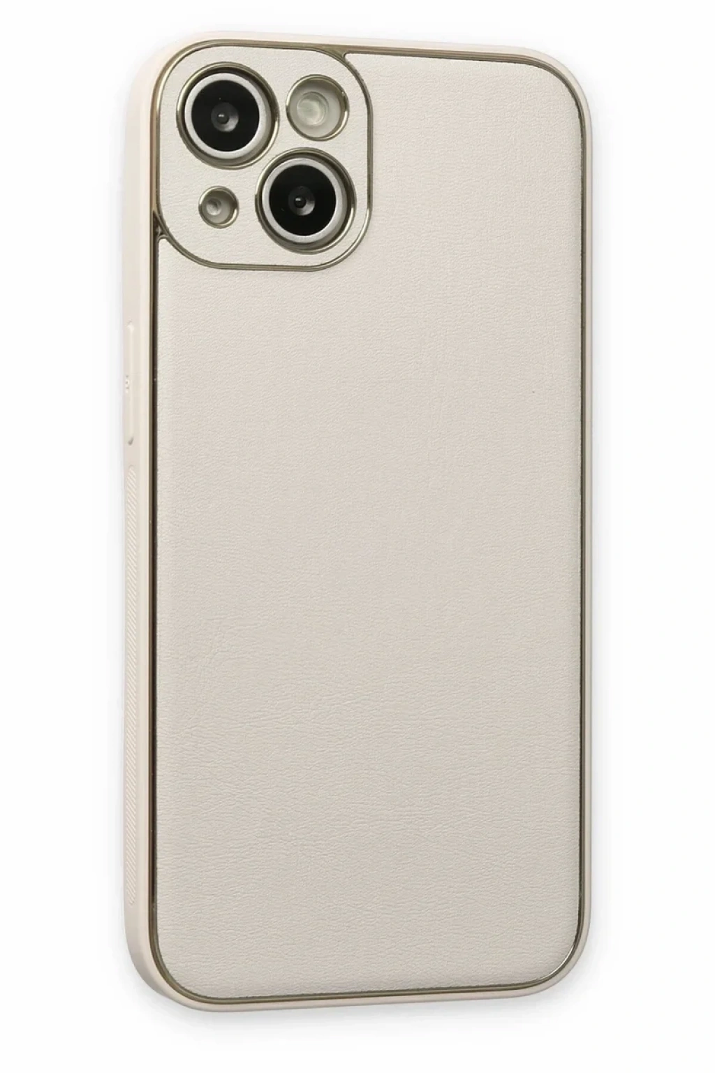 iPhone 14 Plus Kılıf Coco Deri Silikon Kapak - Beyaz