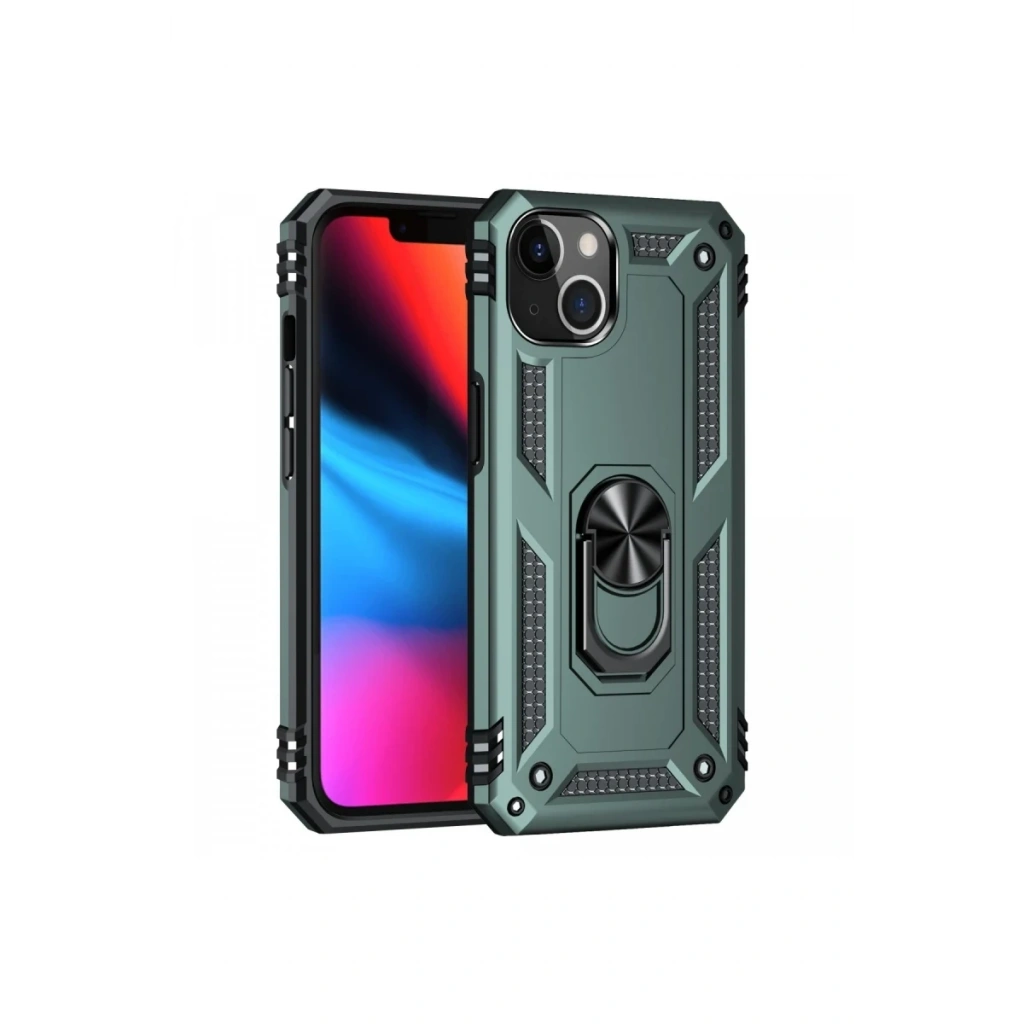 iPhone 14 Plus Kılıf Sofya Yüzüklü Silikon Kapak - Yeşil