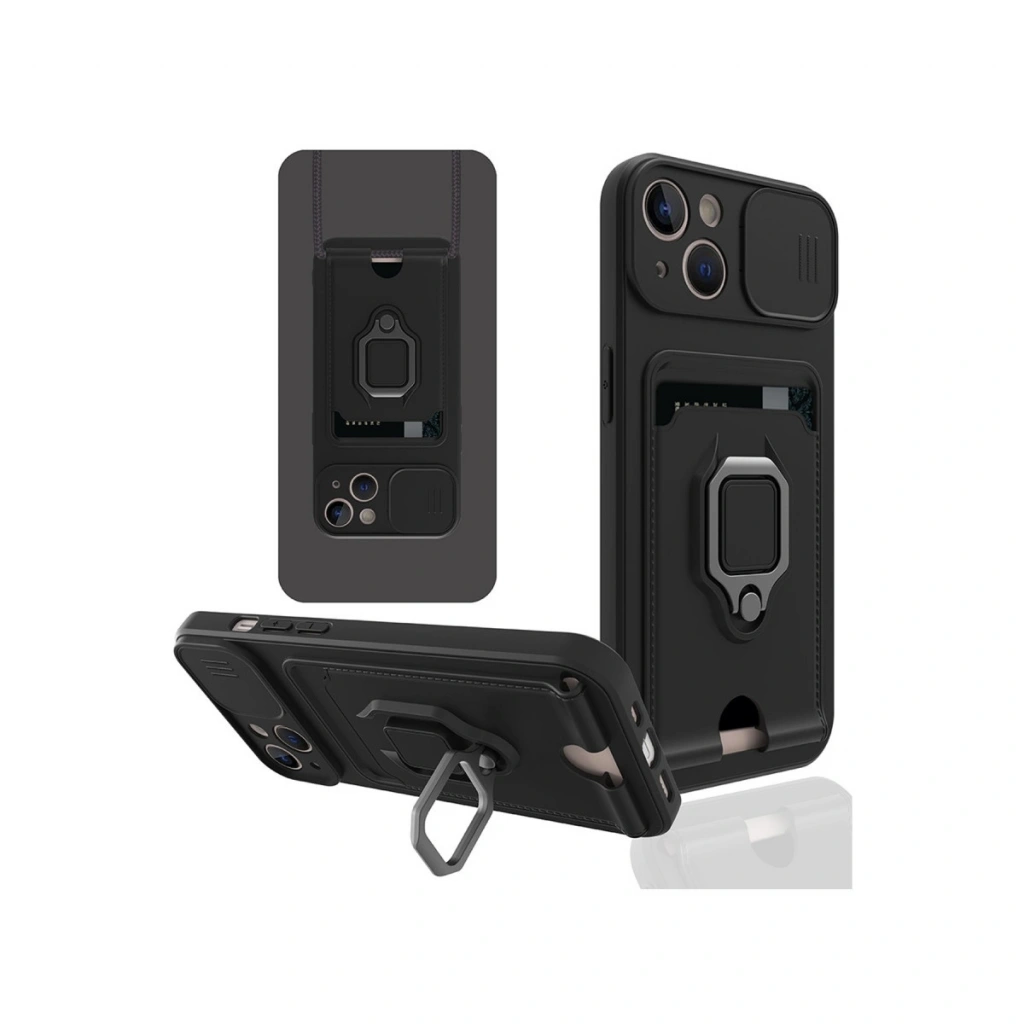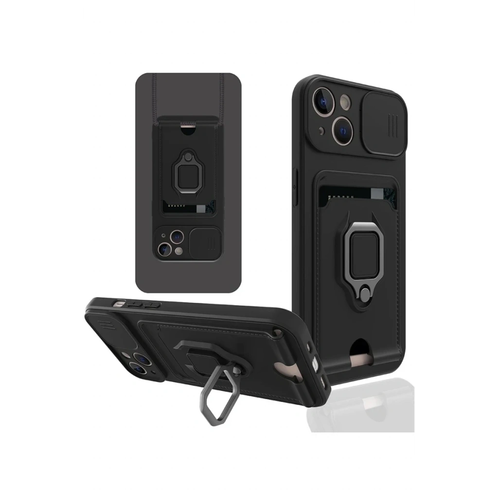 iPhone 14 Plus Kılıf Zuma Kartvizitli Yüzüklü Silikon - Siyah