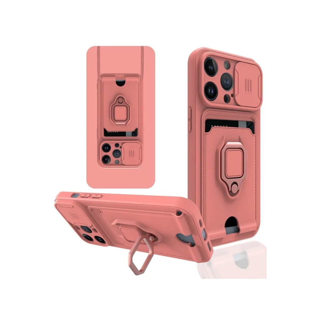 iPhone 14 Pro Kılıf Zuma Kartvizitli Yüzüklü Silikon - Pembe