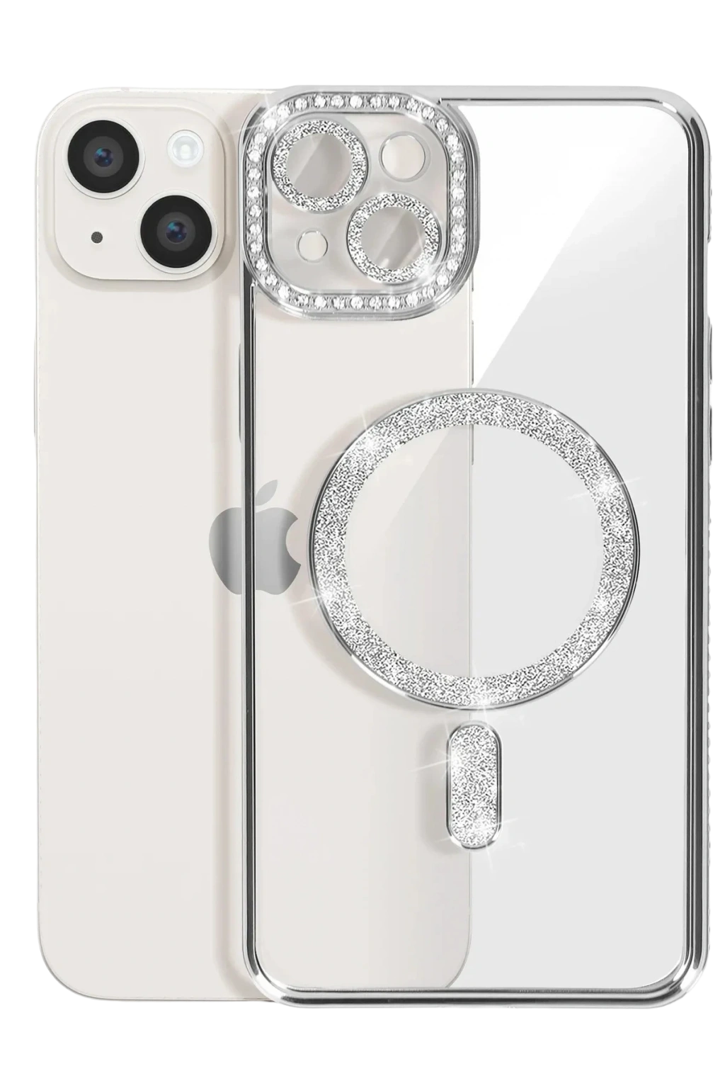 iPhone 15 Kılıf Joke Simli Magneticsafe Kılıf - Gümüş