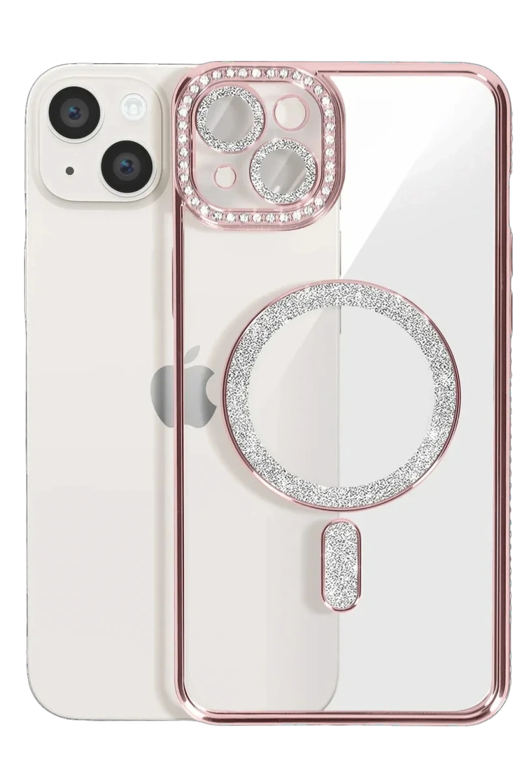 iPhone 15 Kılıf Joke Simli Magneticsafe Kılıf - Pembe