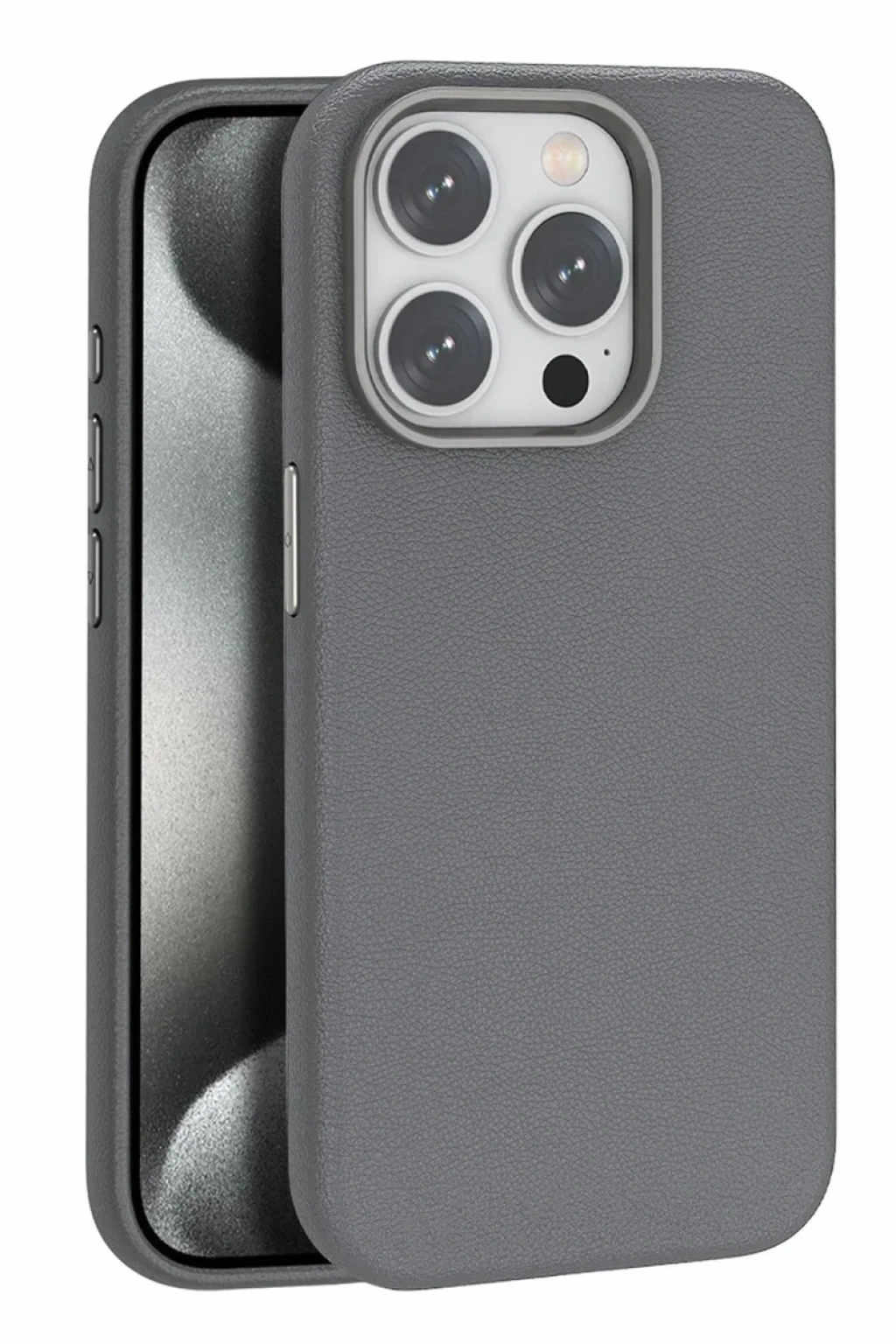 iPhone 15 Pro Kılıf Wonder Deri Magsafe Kapak - Titan Gri