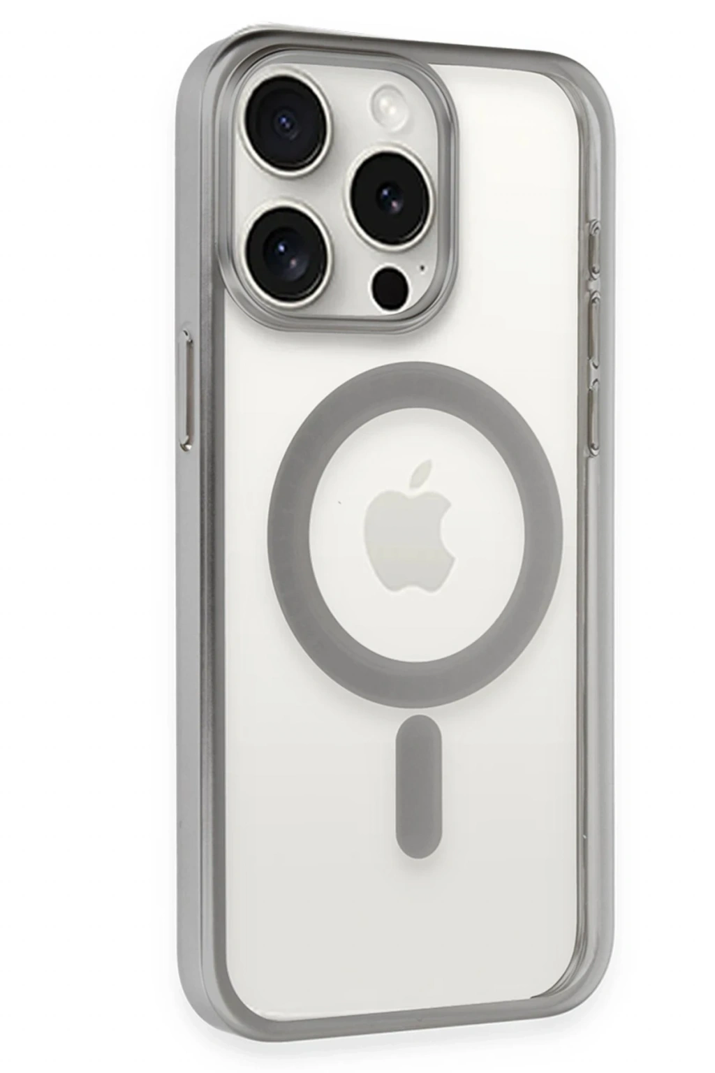 iPhone 15 Pro Max Kılıf Erozi Magsafe Kapak - Gümüş