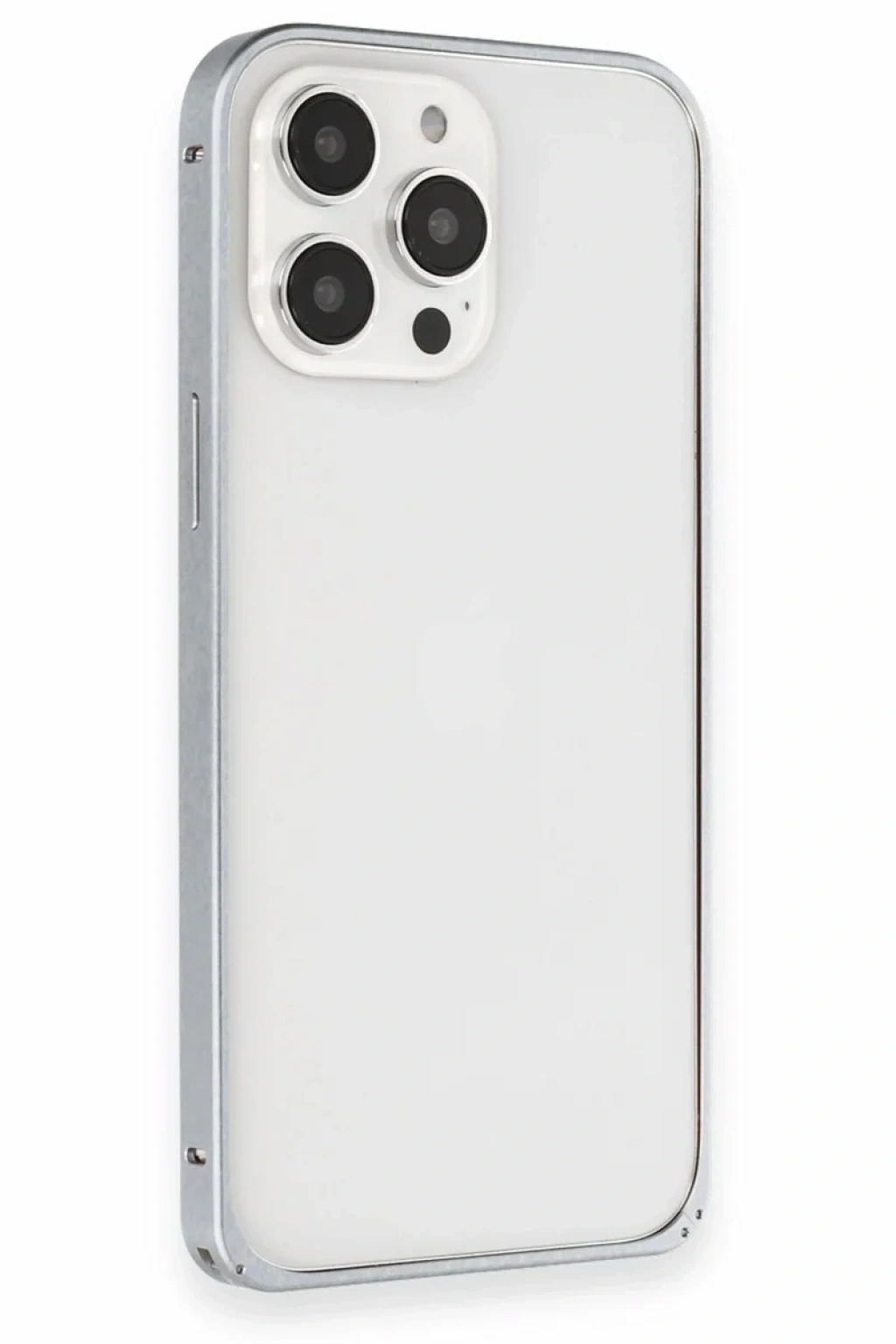 iPhone 15 Pro Max Metal Bumper Mat Kapak - Gri