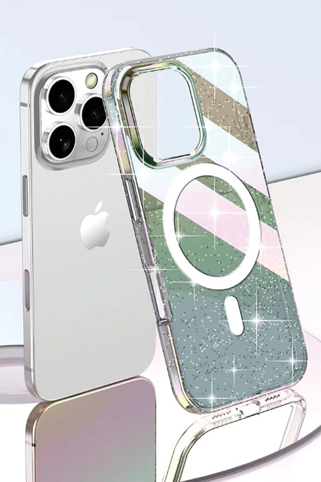iPhone 15 Pro Max Rasasi Simli Magsafe Kapak - Şeffaf