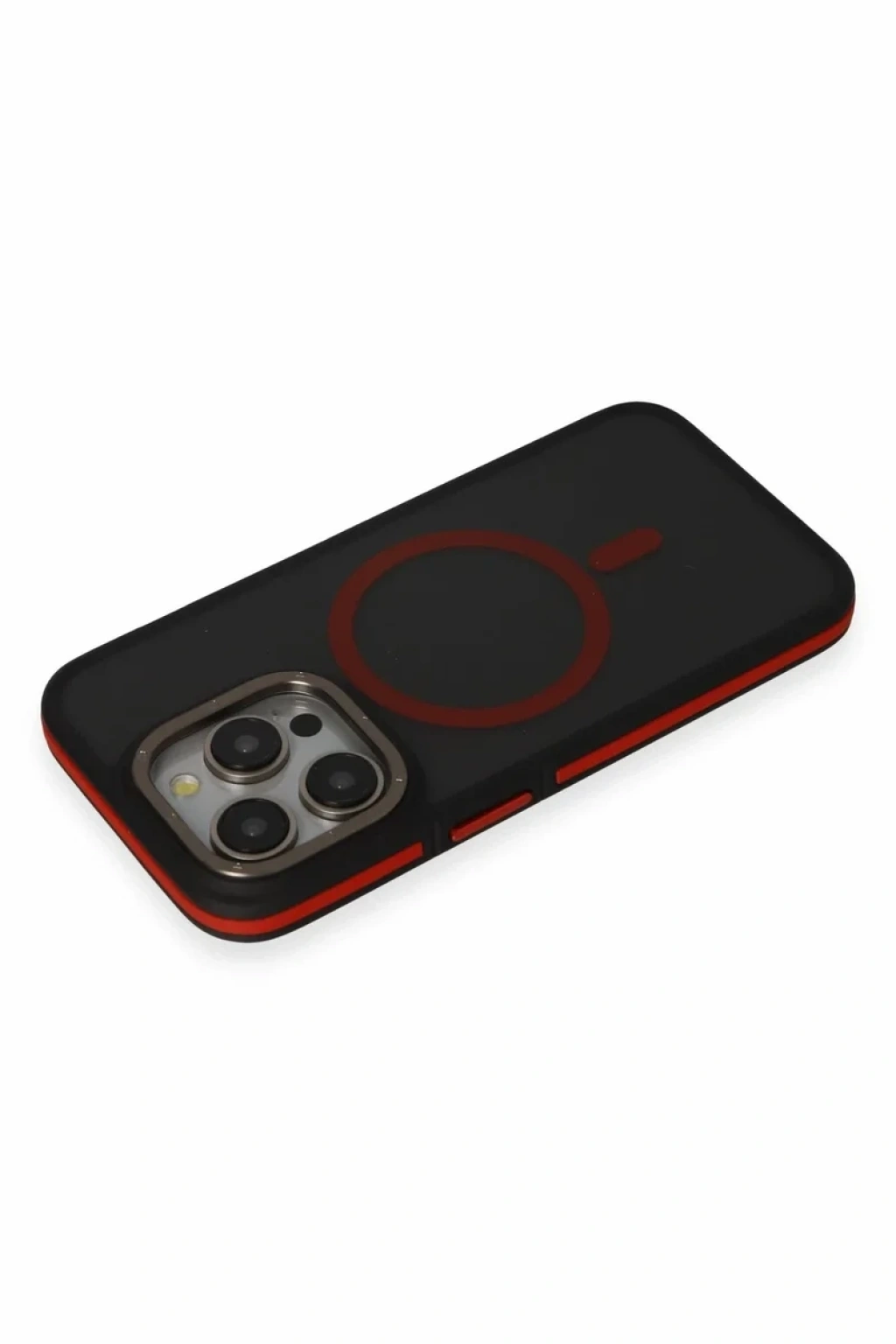 iPhone 15 Pro Rocky Magsafe Kapak - Siyah-Kırmızı