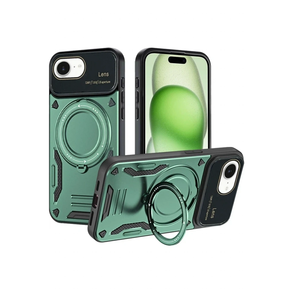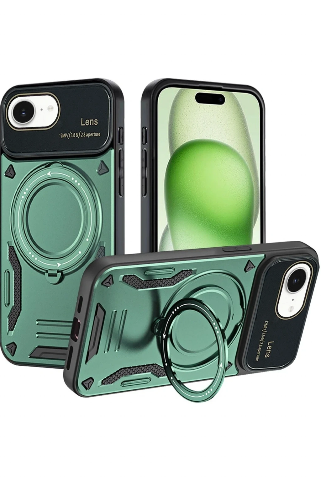 iPhone 16E Kılıf Joy Lens Standlı Kapak - Koyu Yeşil