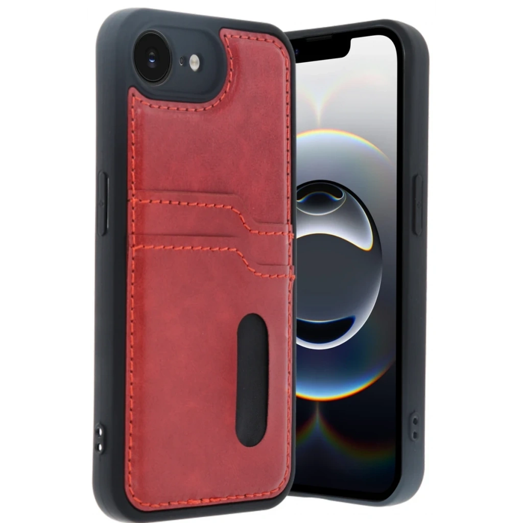 iPhone 16E Kılıf Sara Kartvizitli Deri Kılıf - Kırmızı