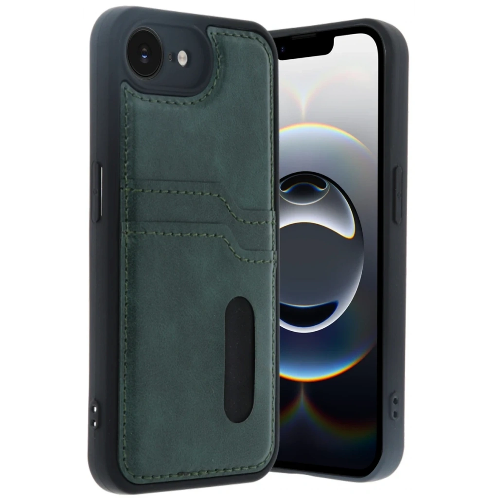 iPhone 16E Kılıf Sara Kartvizitli Deri Kılıf - Koyu Yeşil