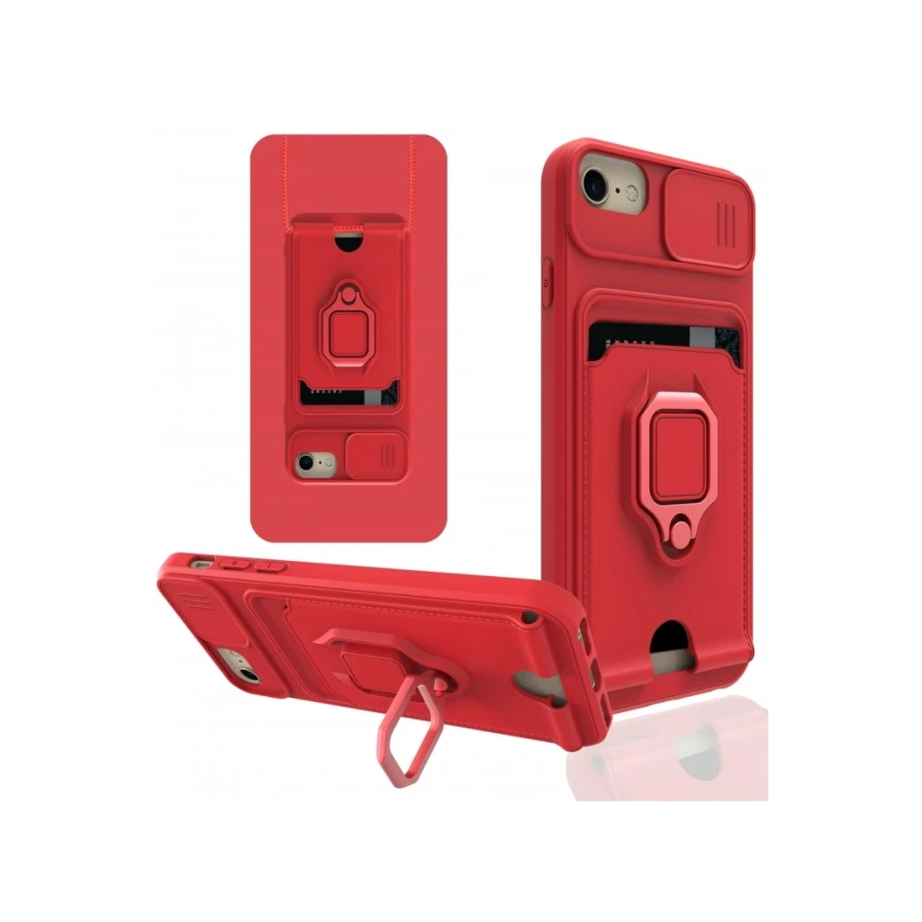 iPhone 6 Kılıf Zuma Kartvizitli Yüzüklü Silikon - Kırmızı