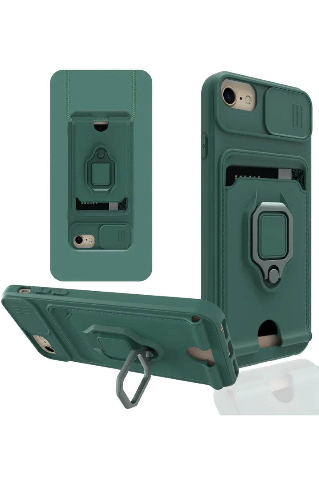 iPhone 6 Kılıf Zuma Kartvizitli Yüzüklü Silikon - Yeşil