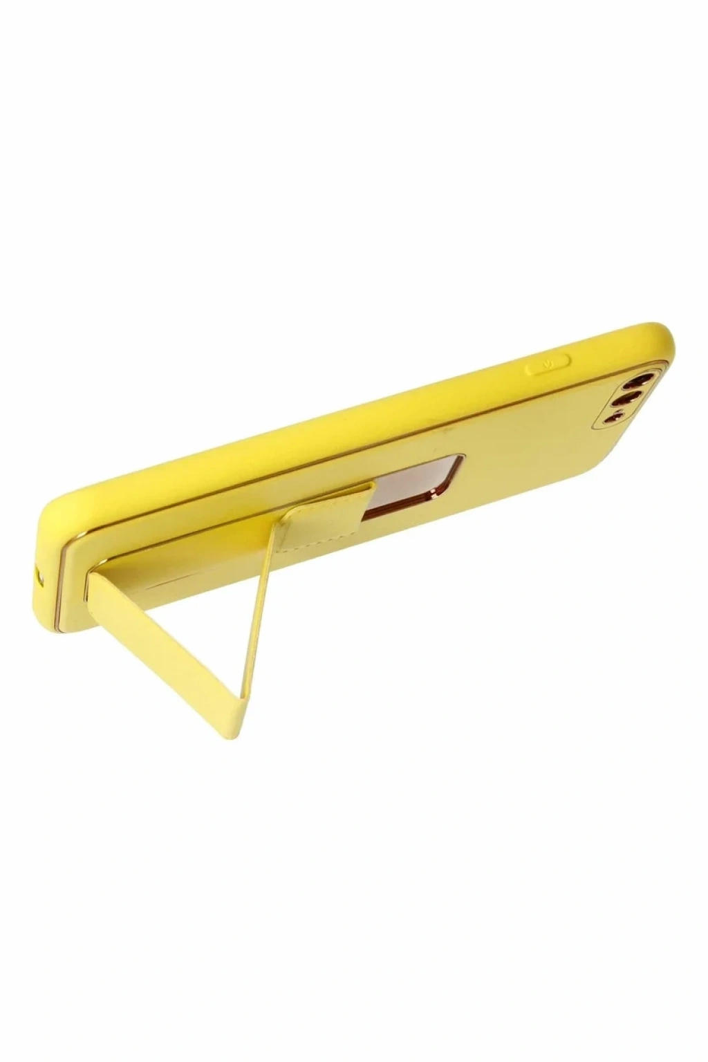 iPhone 7 Plus Kılıf Coco Deri Standlı Kapak - Sarı