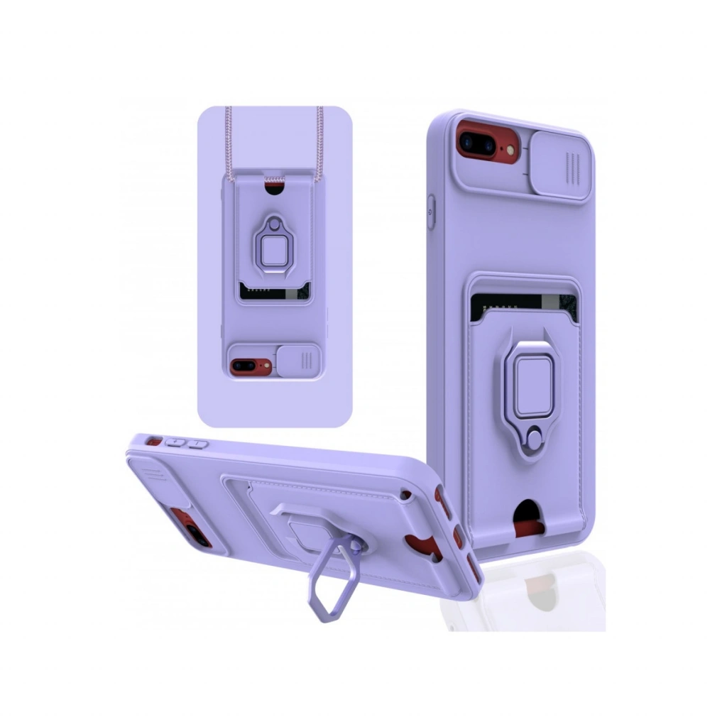 iPhone 7 Plus Kılıf Zuma Kartvizitli Yüzüklü Silikon - Lila