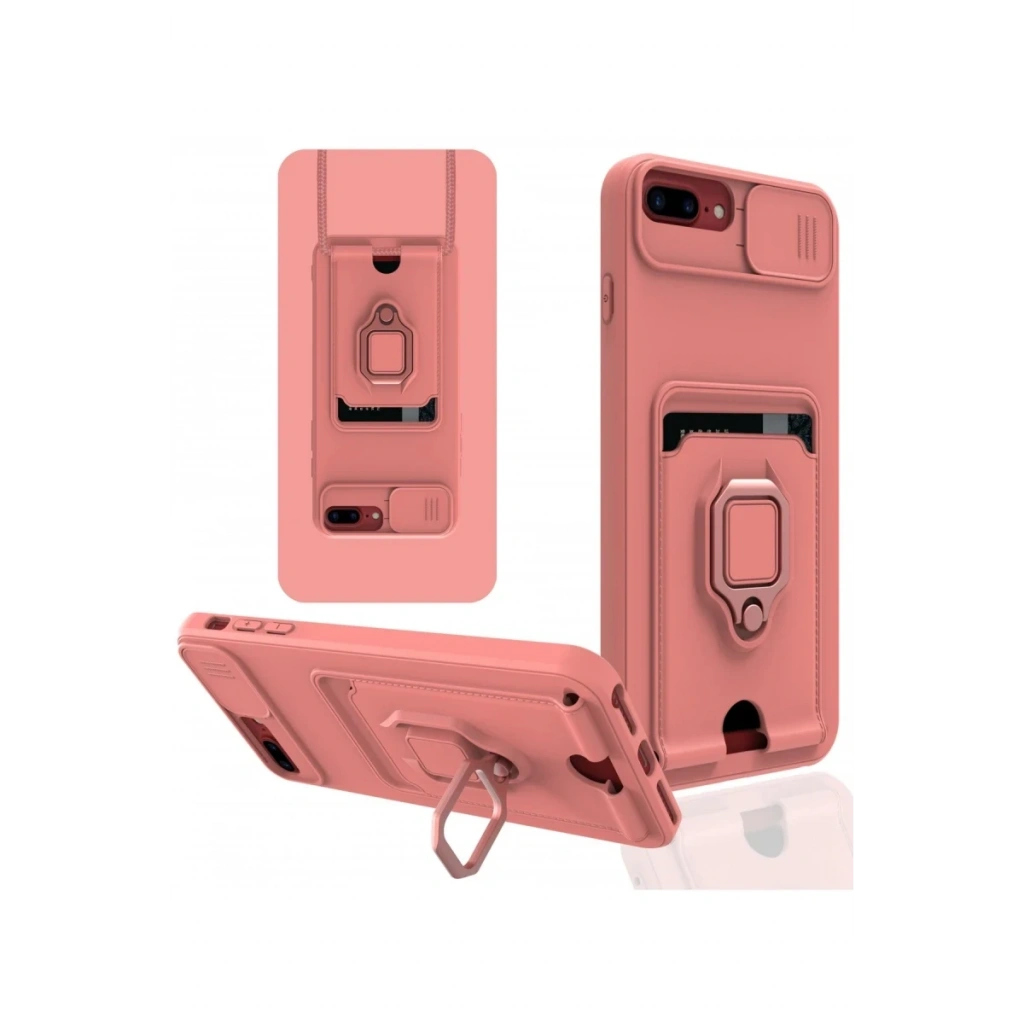 iPhone 7 Plus Kılıf Zuma Kartvizitli Yüzüklü Silikon - Pembe