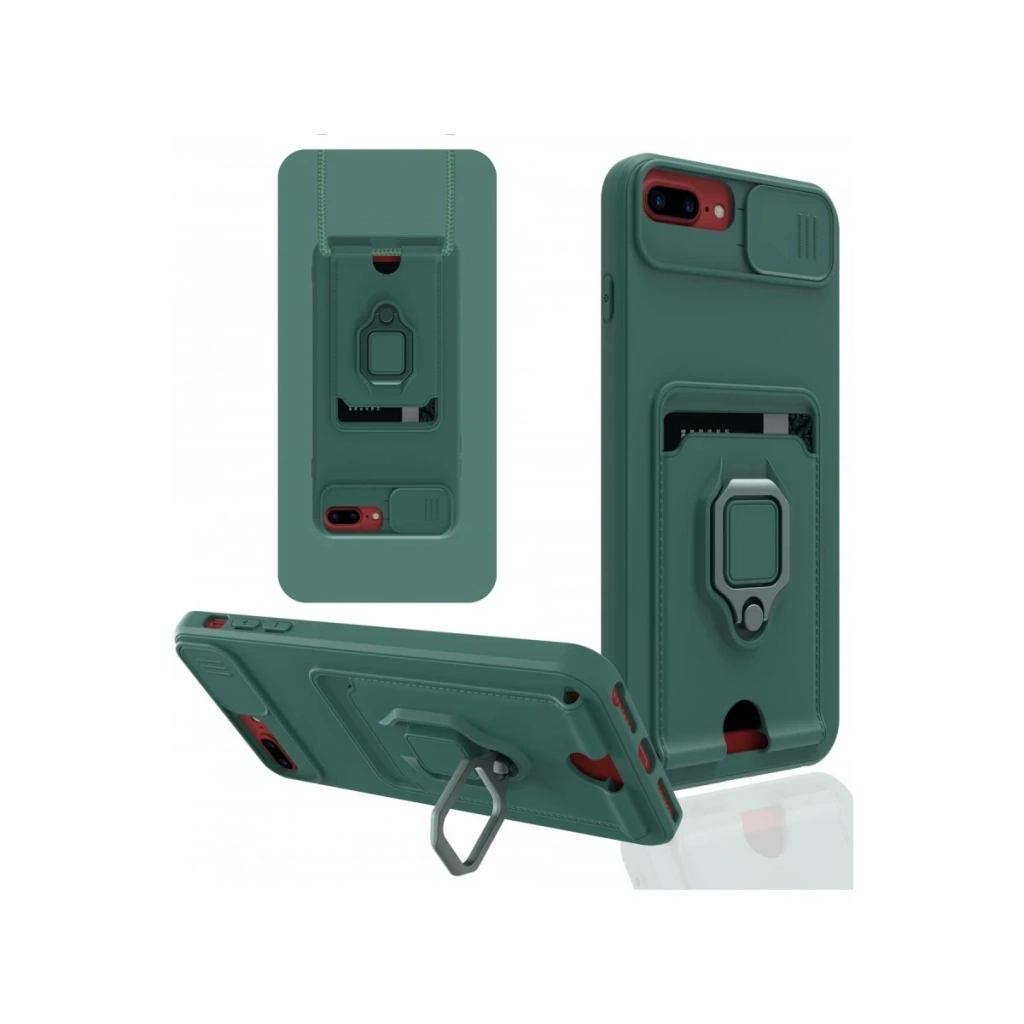 iPhone 7 Plus Kılıf Zuma Kartvizitli Yüzüklü Silikon - Yeşil