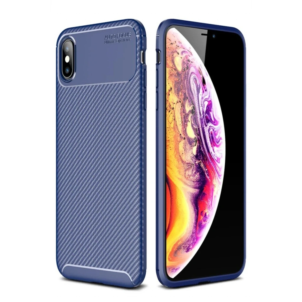 iPhone XS Max Kılıf Auto Focus Karbon Kapak - Lacivert