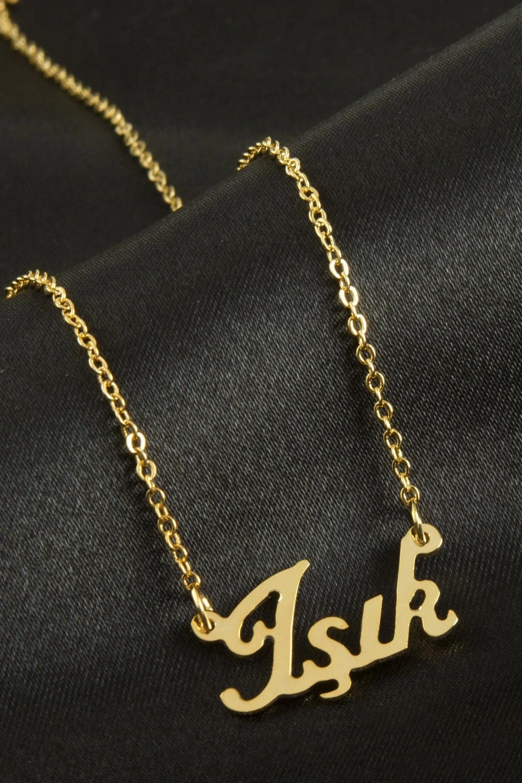 Işık isimli kolye. İsimli kolye pirinç madeninden ve altın kaplamalıdır. Kişiye özel üretilmektedir.Yazdırmak istediğiniz ismi bize mesaj olarak iletmeniz gerekmektedir. Kullanıma bağlı olarak uzun süre kullanıma uygundur. Ürün malzemesi 1.sınıf kalitededir. Ürün ve zinciri sarı renktedir. Ürün zincir boyu 45 cm ve ürün üzerindeki isimler yaklaşık 3 cmdir. İsim boyları ürün ismine göre degişiklik göstermektedir.