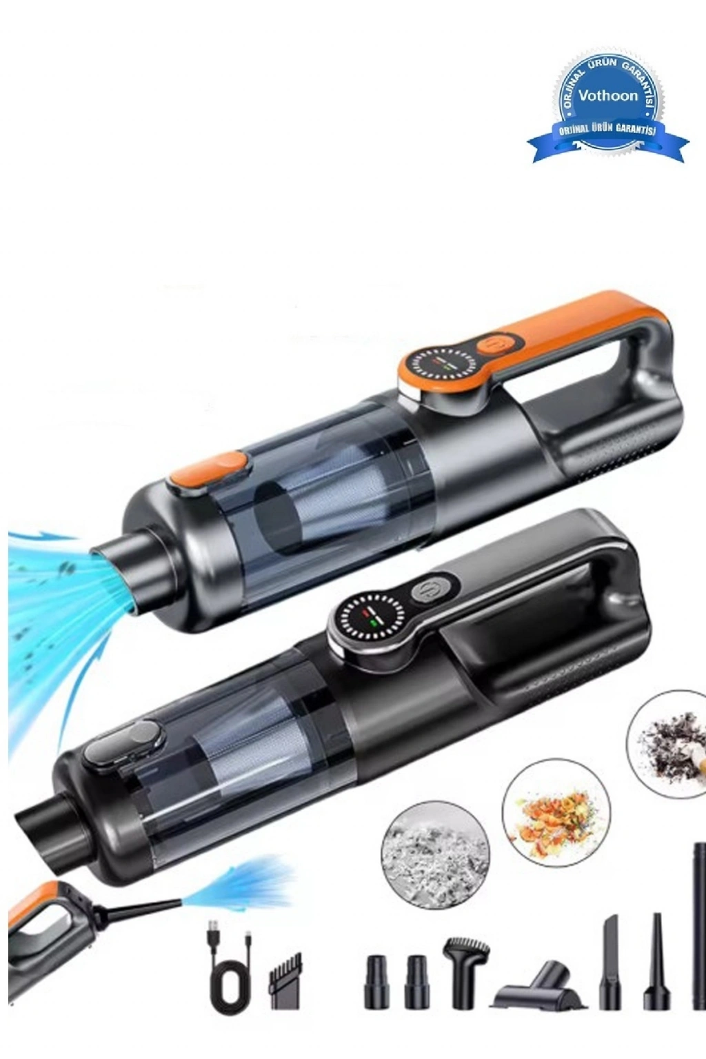 Işıklı Araç Süpürgesi Kablosuz 22.000 Pascal Çekim Gücü Vakum Ve Üfleme 2in1 10başlık Metal Filtreli