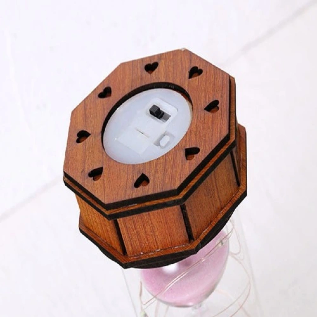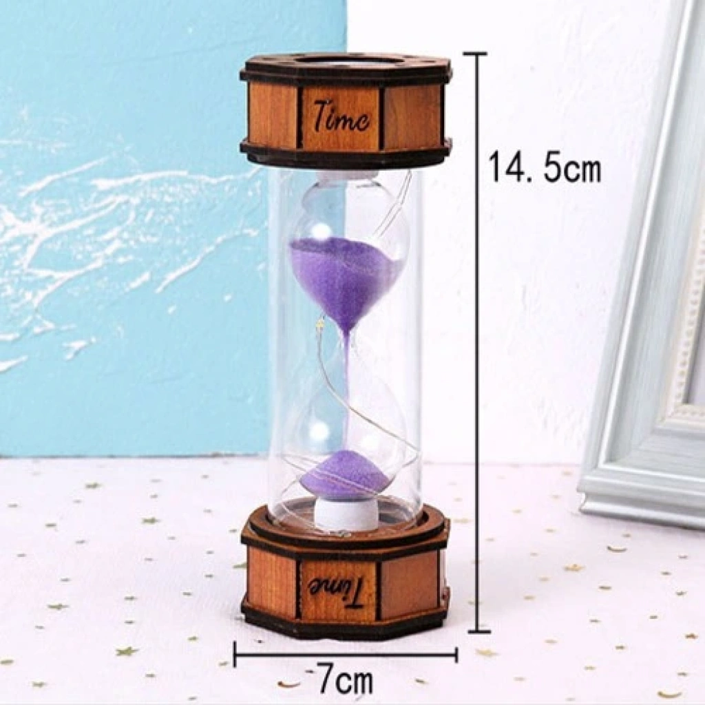 Işıklı Dekoratif Ahşap Kum SaatiIşıklı dekoratif ahşap kum saati, evinize veya çalışma alanınıza şık ve sıcak bir atmosfer katacak dekoratif bir aksesuardır. Ahşap ve cam malzemeden üretilmiş olan bu kum saati, ışıklı olması sayesinde loş ışık sevenler için ideal bir dekoratif üründür. Alt kısmındaki on-off düğmesi ile ışığını açıp kapamak kolaydır ve farklı renk seçenekleriyle gönderilir.Ürün Özellikleri:Ahşap ve cam malzemeden üretilmiştir.3 adet mini saat pili ile çalışır (piller pakete dahildir).Alt kısmında açma/kapama düğmesi vardır.Ürün karışık renklerde gönderilmektedir.Ürün Ölçüsü:14.5 cm x 7 cm