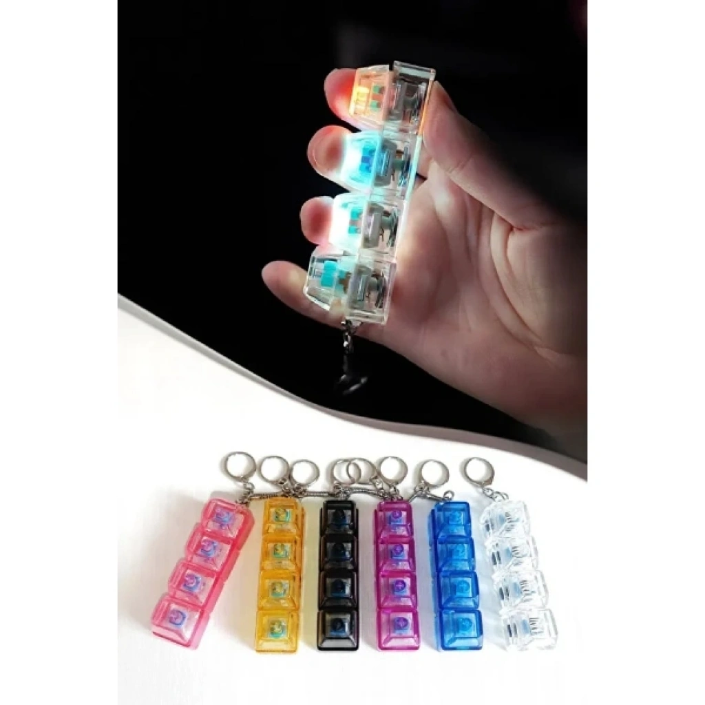 IŞIKLI KLAVYE TUŞU SWİTCH ANAHTARLIKÜrün ÖzellikleriIşıklı Klavye Tuşu Switch Anahtarlık, mekanik klavye tuş hissini mini boyutta sunan eğlenceli ve dikkat çekici bir aksesuardır. Basıldığında ışık efekti veren tasarımı sayesinde hem görsel hem de dokunsal bir deneyim sunar. Mini formdaki switch tuş mekanizması sayesinde tıklama hissi verir ve gün içinde elde oynanabilen bir fidget stres oyuncağı anahtarlık olarak kullanılabilir. Şeffaf gövde yapısı ile iç mekanizma detayları görülebilir ve ışıklı tasarımı ile karanlık ortamlarda dikkat çekici bir görünüm sağlar. Anahtarlık halkası sayesinde çanta, anahtar veya aksesuar olarak rahatlıkla taşınabilir. Ürün renklerde gönderilir; renk tercihi yapılamaz.Ürün Teknik Özellikleri Özellik Açıklama Ürün Adı Işıklı Klavye Tuşu Switch Anahtarlık Tasarım Mekanik klavye tuşu formu Özellik Basınca duyarlı ışık efekti Kullanım Fidget stres oyuncağı ve anahtarlık Renk renklerde gönderilir Paket İçeriği1 adet Işıklı Klavye Tuşu Switch Anahtarlık