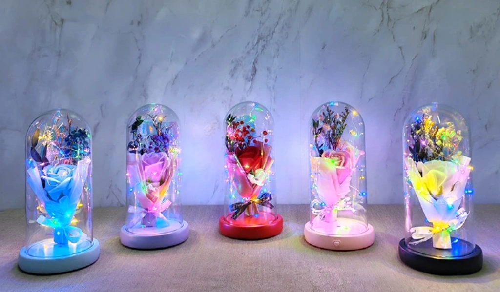 IŞIKLI MÜZİKLİ CAM FANUS İÇİNDE LAVANTALI ROMANTİK GÜLÜrün ÖzellikleriIşıklı müzikli cam fanus içinde lavantalı romantik gül, zarif tasarımı ve hoş detaylarıyla dekorasyona romantik ve huzurlu bir atmosfer kazandıran özel bir hediyelik üründür. Şeffaf cam fanus içerisinde yer alan yapay gül ve lavanta detayı, LED ışık sistemiyle birlikte çalıştığında yumuşak ve göz alıcı bir aydınlatma sunarak ortama sıcak bir ambiyans katar. Müzikli yapısı sayesinde görsel etkiyi hoş bir melodiyle tamamlayan bu ürün, hem dekoratif obje hem de anlamlı bir hediye alternatifi olarak öne çıkar. 21x11 cm ölçüsü ile masa, komodin, raf ve vitrin üzerinde rahatlıkla kullanılabilir ve bulunduğu alanda estetik bir görünüm oluşturur. Renk seçimi yapılamayan ürün, görsellerde yer alan renklerden biri olacak şekilde karışık olarak gönderilmektedir. Sevgililer günü, doğum günü, yıl dönümü ve özel günlerde şık ve romantik bir hediye arayanlar için ideal bir tercihtir.Paket İçeriği1 adet Işıklı Müzikli Cam Fanus İçinde Lavantalı Romantik Gül