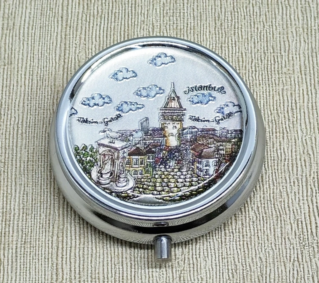 İSTANBUL TEMALI İLAÇ KUTUSU MODEL 6Ürün Özellikleriİstanbul temalı ilaç kutusu, klasik ve zarif tasarımıyla günlük kullanımda hem pratik hem de estetik bir çözüm sunar. Üzerinde yer alan İstanbul manzarası ile koleksiyonluk ve hediyelik eşya olarak da tercih edilebilen bu ürün, kompakt yapısı sayesinde çanta içinde rahatlıkla taşınabilir. İç kısmında bulunan üç bölmeli ilaç kutusu tasarımı, farklı ilaçların düzenli ve karışmadan saklanmasına yardımcı olur. Günlük kullanım ve seyahatler için ideal olan taşınabilir ilaç saklama kutusu, dayanıklı gövdesi ve kapaklı yapısıyla ilaçların güvenli şekilde muhafaza edilmesini sağlar. Fonksiyonel yapısı ve şık görünümüyle öne çıkan bölmeli ilaç kutusu, düzenli kullanım avantajı sunar.Ürün Teknik Özellikleri Özellik Açıklama Ürün Adı İstanbul Temalı İlaç Kutusu Model 6 Ölçü Yaklaşık 5 x 5 cm Bölme Sayısı 3 bölmeli Tasarım İstanbul temalı kapak Kullanım Alanı Günlük kullanım, seyahat, çanta içi Paket İçeriği1 adet İstanbul Temalı İlaç Kutusu - Model 6