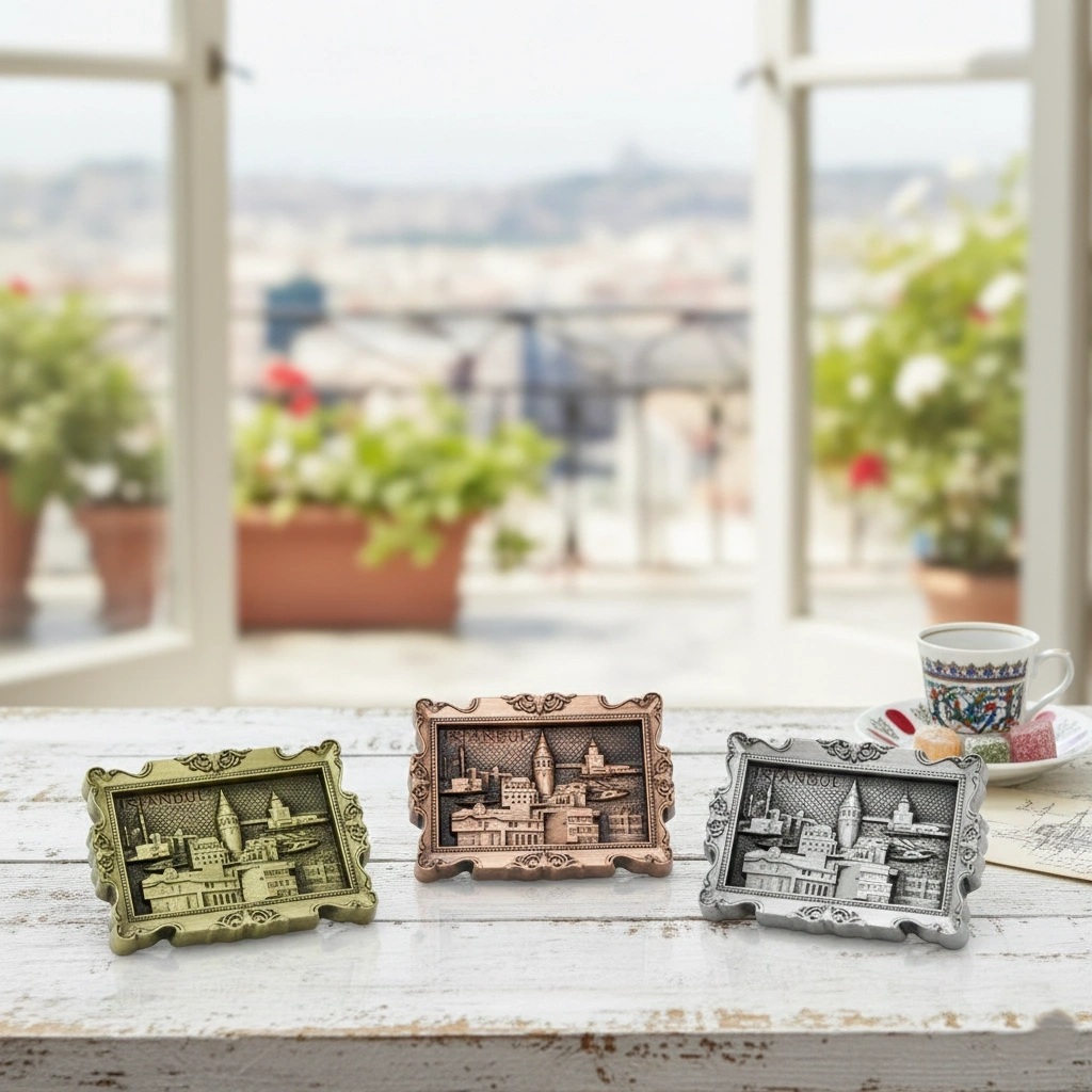 İSTANBUL YÖRESEL MAGNET MODEL 14Ürün Özellikleriİstanbul Yöresel Magnet Model 14, İstanbul’un tarihî ve kültürel zenginliğini yansıtan zarif bir dekoratif üründür. Dayanıklı metal malzeme ile üretilmiş olup, uzun ömürlü kullanım sağlar. Mıknatıslı özellik sayesinde, bu magnet buzdolabı veya metal yüzeylere kolayca yapışır ve her zaman kullanıma hazır olur. İstanbul figürleri ile tasarlanmış olan bu magnet, hem dekoratif hem de anlamlı bir hediye seçeneği sunar.Paket İçeriği1 adet İstanbul Yöresel Magnet Model 14.