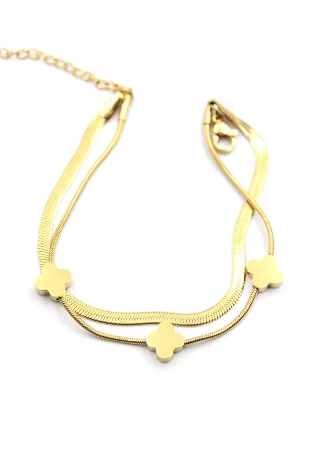 İtalyan Zincir Yonca Bileklik - Altın