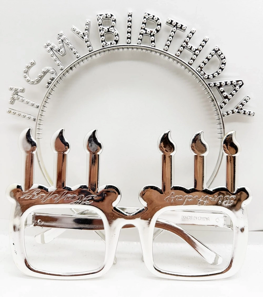 İt's My Birthday Yazılı Taç Ve Mum Şekilli Gözlük Seti Gümüş Renk