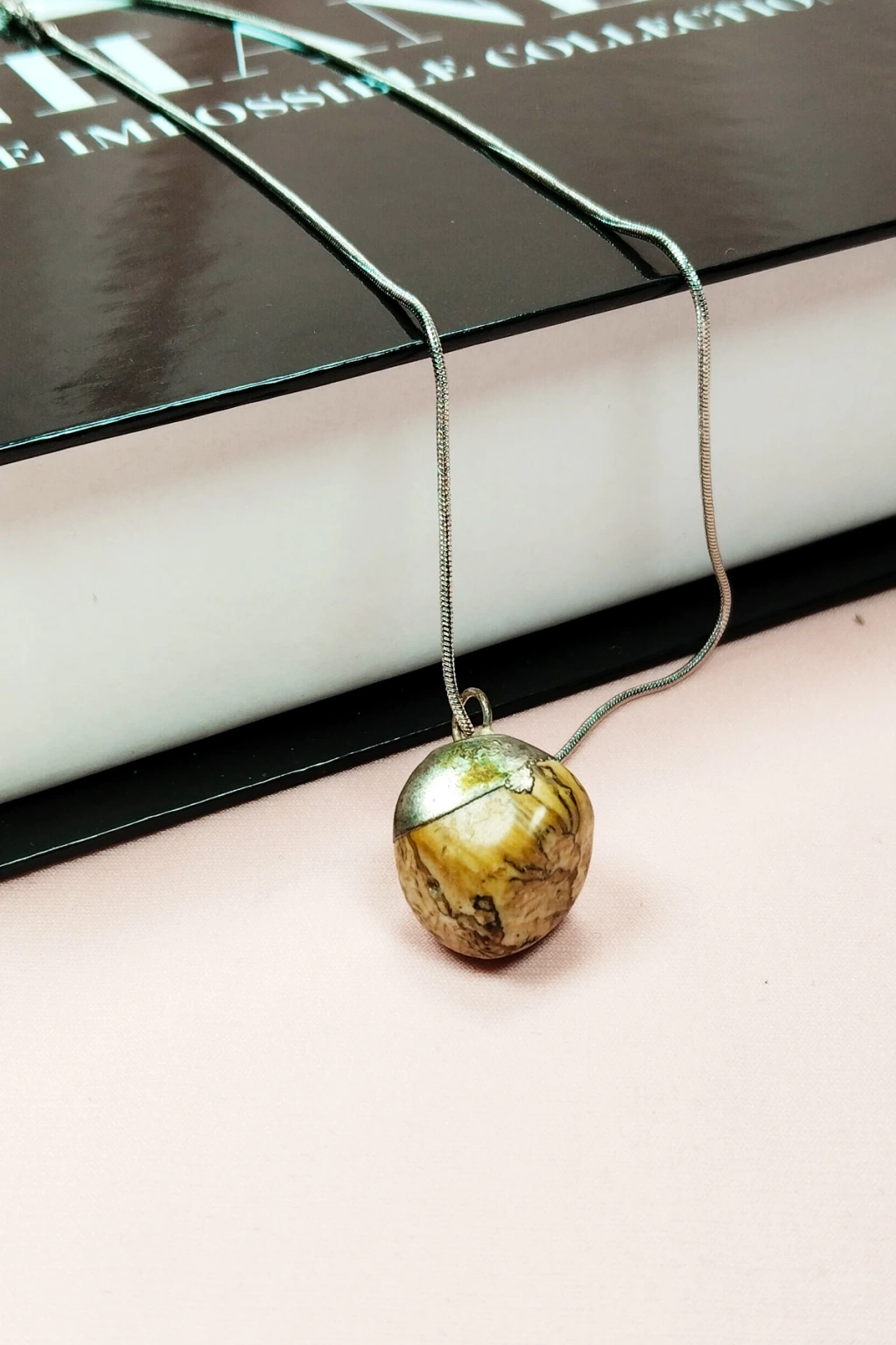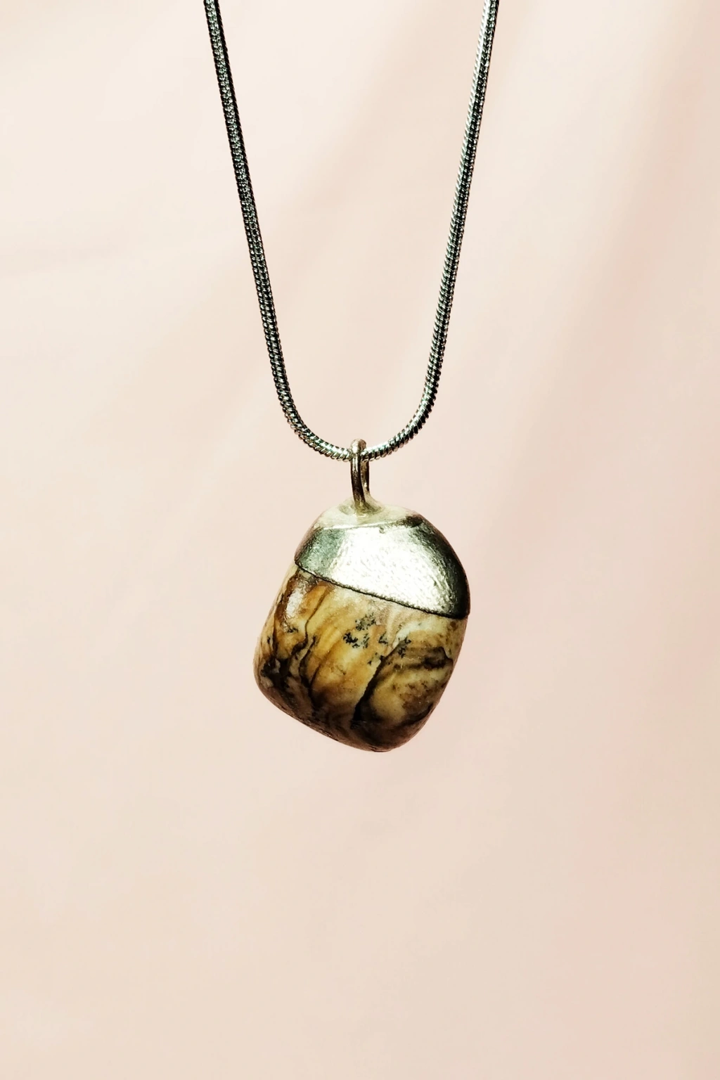 Jasper Doğal Taşı Zincirli El Yapımı Kolye Uç: 2 cm Zincir: 20 cm Kutulu