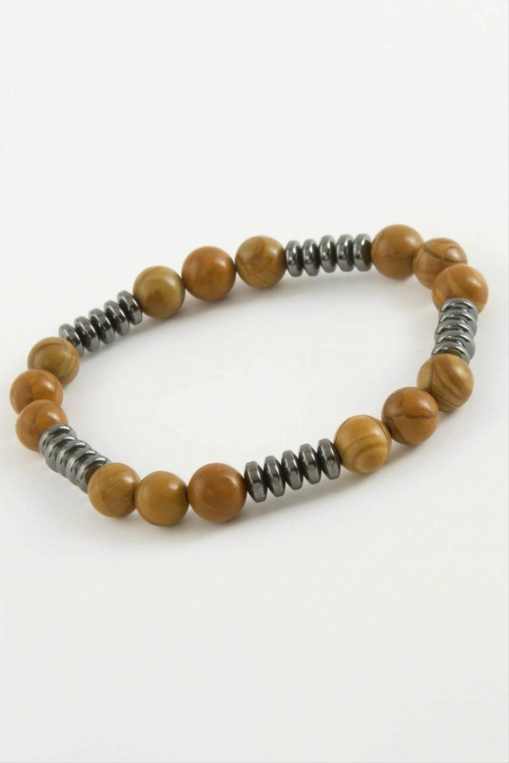 Bileklik: Ürün malzemesi Jasper ve hematit doğaltaşından imal edilmiştir. Misina üzerine dizilmiştir. Misina esneme özelliği bulunmaktadır.