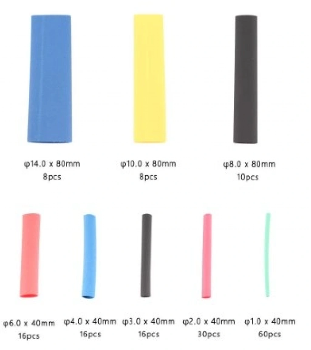 KABLO KORUYUCU MAKARON SETİ 164 PARÇADaralan makaron, ısı etkisi ile belirli bir oranda daralarak çapı küçülen özel bir izolasyon malzemesidir. Elektriksel izolasyon, koruma, etiketleme, sınıflama gibi uygulama alanları vardır. Isı etkisi ile 2 ye 1 oranında küçülerek, operasyona konu olan kabloların etrafını sıkıca sarar. Bu sarma işlemi sayesinde, kapladığı malzemeyi dış etkenlerden korur. Genellikle kabloların yalıtım amaçlı kaplanması işleminde kullanılmaktadır.8 Farklı çapta makaron bu sette bulunmaktadır. Her çap için 4-5 farklı renk seçeneği vardır. Kullanımı uygulanması çok kolaydır. Aşağıda adet çap ve uzunluk tablosu bulunmaktadır.( Adet x Çap x Uzunluk Renk )60 Adet x 1.0mm x 40mm (Sarı, Siyah, Kırmızı, Yeşil )30 Adet x 2.0 mm x 40mm (Sarı, Siyah, Kırmızı, Mavi )16 Adet x 3.0mm x 40mm (Sarı, Siyah, Kırmızı, Yeşil )16 Adet x 4.0mm x 40mm Sarı, Siyah, Kırmızı, Mavi )14 Adet x 6.0mm x 40mm (Sarı, Siyah, Kırmızı, Yeşil )12 Adet x 8.0mm x 80mm (Sarı, Siyah, Kırmızı, Mavi )8 Adet x 10.0mm x 80mm (Sarı, Siyah, Kırmızı, Yeşil )8 Adet x 14.0mm x 80mm Sarı, Siyah, Kırmızı, Mavi )Paket İçeriği164 parça ısıyla daralan makaron kablo koruyucu set