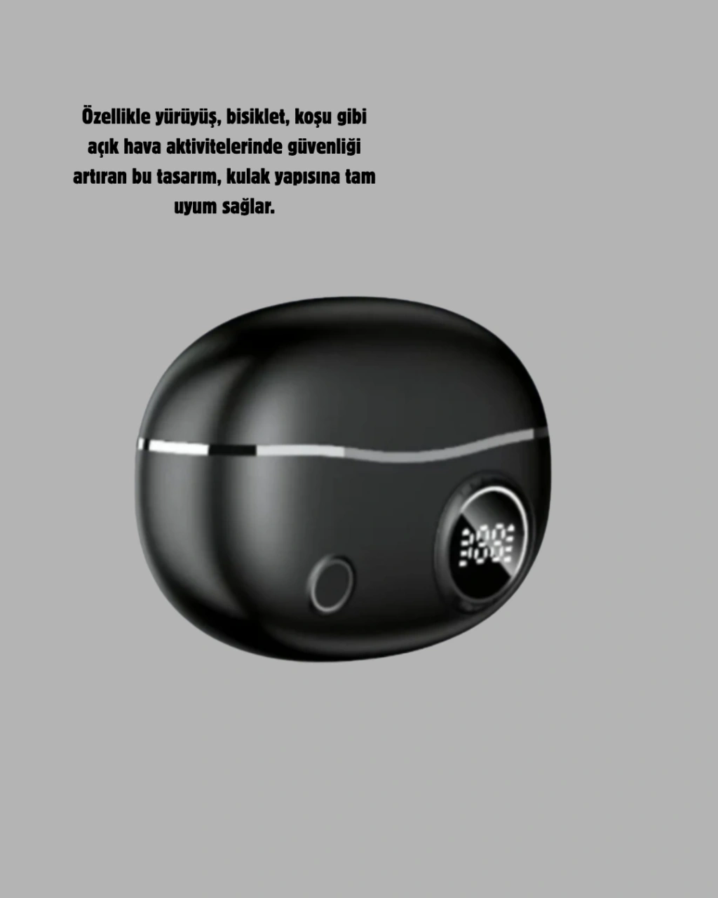 Açık kulak tasarımına sahip bu kablosuz Bluetooth kulaklık, dış sesleri tamamen kapatmadan müzik dinlemek isteyen kullanıcılar için geliştirilmiş modern ve ergonomik bir modeldir. Kulağın içine girmeyen yapısı sayesinde uzun süreli kullanımda hiçbir baskı oluşturmaz ve kulakta ağırlık hissi yaratmaz. Özellikle yürüyüş, koşu, bisiklet kullanımı gibi açık hava aktivitelerinde çevreyi duyabilmek güvenliği artırdığı için oldukça önemlidir. Bu kulaklık tam da bu ihtiyaca yönelik tasarlanmıştır.Nefes alabilen silikon kaplaması sayesinde kulakla temas eden yüzey yumuşak, esnek ve terlemeye dayanıklıdır. Hafif gövdesi kulakta yokmuş hissi verir ve yoğun aktivitelerde dahi rahatsızlık oluşturmaz. Açık kulak yapısı sayesinde kulağın doğal formunu korur ve uzun süre müzik dinleyen kullanıcılar için önemli bir konfor sağlar.Bluetooth 5.4 teknolojisi, daha kararlı ve hızlı bağlantı sunar. Video izlerken ya da oyun oynarken düşük gecikme sağlayan yapısı, senkron ses deneyimi sunar. APTX ses teknolojisi ise dinamik bas ve net tiz dengesini sağlar. Sesin doğal, güçlü ve dengeli bir şekilde kulağa ulaşmasını mümkün kılar.Type-C hızlı şarj desteği, kulaklığı kısa sürede yeniden kullanıma hazır hale getirir. Tek kulaklık 6 saat boyunca kesintisiz kullanım sağlarken, şarj kutusu bu süreyi 30 saate kadar uzatır. Bu uzun kullanım süresi, gün boyu müzik keyfi yaşamak isteyen kullanıcılar için büyük bir avantajdır.Dokunmatik sensörleri sayesinde cihaz üzerindeki işlemleri hızlıca yönetebilirsiniz. Müzik geçişleri, çağrı yanıtlama veya duraklatma gibi kontroller pratik bir şekilde yapılabilir. Tasarım olarak hem spor hem günlük stil ile uyum sağlayan sade ve modern bir görünüm sunar.Aktif yaşam tarzına sahip kullanıcılar, dış mekân sporlarıyla ilgilenenler veya kulak içi tasarımlardan rahatsız olanlar için mükemmel bir seçenektir. Konforu, ses kalitesi ve teknolojik özellikleriyle üstün bir kullanım deneyimi sunar.