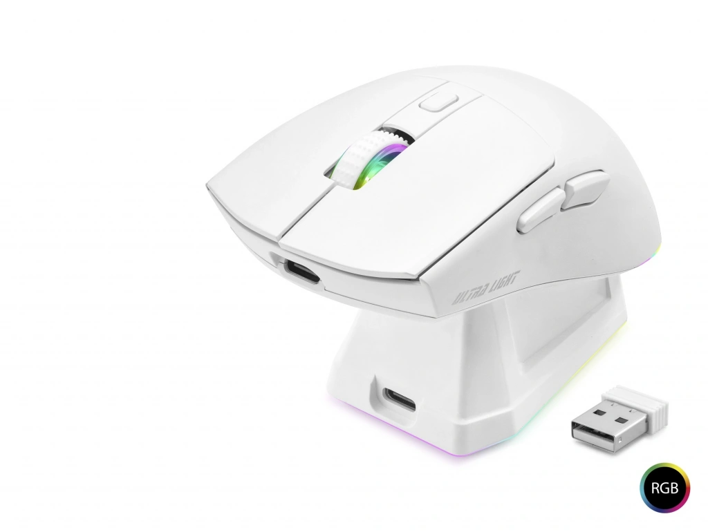 KABLOSUZ GAMING RGB MOUSE ŞARJ STANDLI - BEYAZ