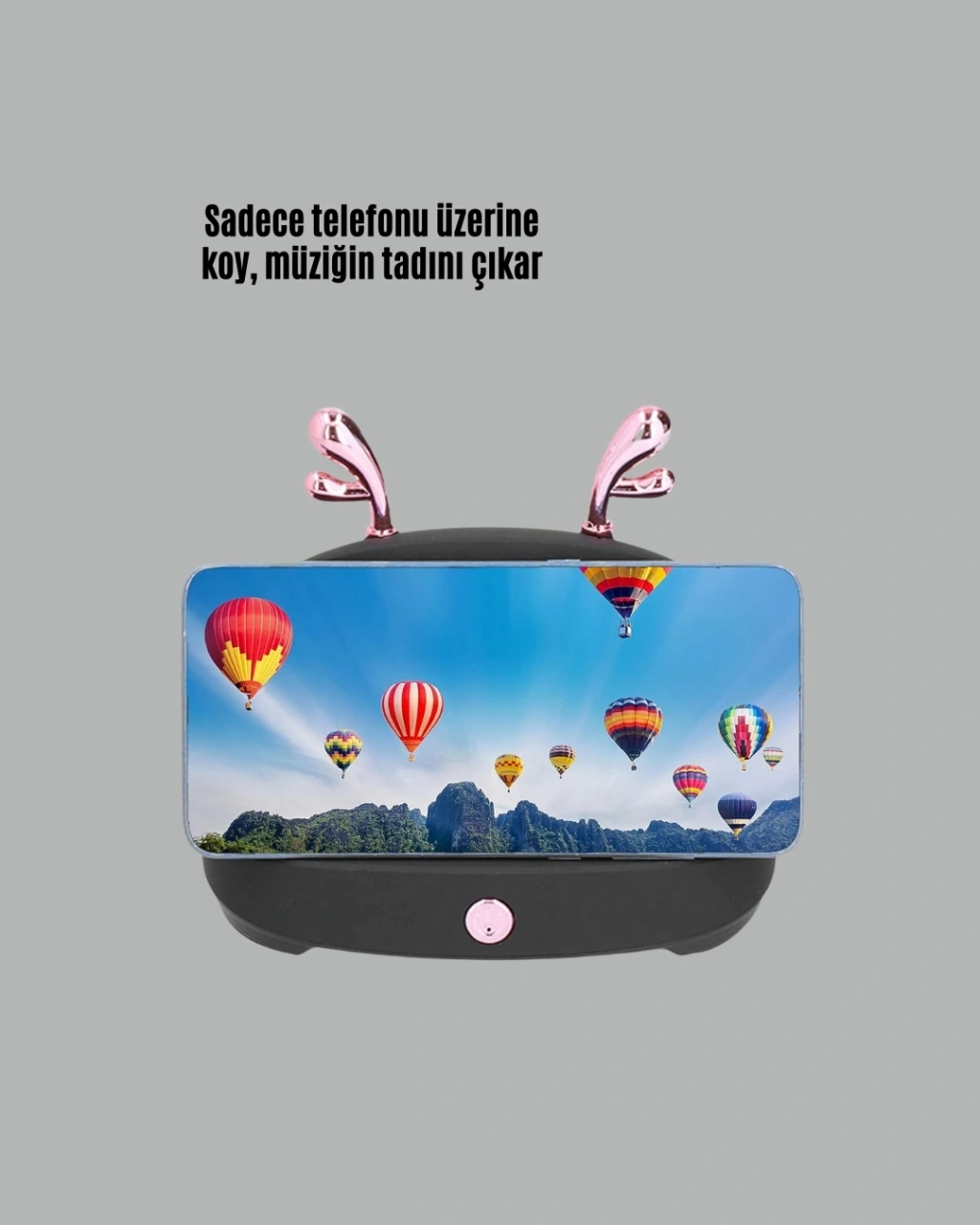 Kablosuz indüksiyonlu telefon tutucu ve hoparlör, günlük yaşamda hem ses kalitesini artırmak hem de telefonunuzu şık ve fonksiyonel bir şekilde yerleştirmek isteyenler için tasarlanmıştır. Cihazı kullanmak oldukça kolaydır; yapmanız gereken tek şey güç düğmesini açmak ve telefonunuzu algılama alanına yerleştirmektir. Telefonunuzdan müzik çalmaya başladığınız anda, hoparlörler otomatik olarak sesi algılar ve stereo kalitesinde ses çıkışı sağlar. Bu sayede izlediğiniz videolarda veya dinlediğiniz müziklerde daha zengin, daha dolgun ve daha net bir ses deneyimi yaşarsınız.Yüksek kaliteli hoparlör donanımı, sesin doğal ve canlı çıkmasını sağlayarak size sinema ya da konser salonu atmosferi sunar. 750mAh kapasiteye sahip güçlü bataryası, tek şarjla yaklaşık 5 saat kesintisiz kullanım olanağı verir. Böylece uzun süreli seyahatlerde veya dış mekan aktivitelerinde yanınızda taşımak için idealdir. USB Micro şarj kablosu ile hızlı ve kolay şekilde şarj edebilirsiniz.Ürün, dayanıklı ve hafif ABS malzemeden üretilmiştir, bu sayede hem sağlam hem de taşınması kolaydır. Telefonunuzun güvenle sabitlenmesini sağlayan telefon tutucu, aynı zamanda masaüstünde ya da yatak başında telefonunuzu rahatça kullanabilmenize imkân verir. Ayrıca, ürünle birlikte gelen iki adet geyik figürlü kulaklık tutucu, hem telefonunuzun kablolarını düzenli tutar hem de ürünün es görünümüne katkıda bulunur.Ses çıkışını kontrol etmek için telefonunuzdaki ses seviyesi tuşlarını kullanabilir, hoparlör otomatik olarak buna göre ses ayarını yapar. Bluetooth bağlantısına ihtiyaç duymadan çalıştığı için, uyum sorunları yaşamaz ve hemen kullanıma başlayabilirsiniz. Ayrıca cihazın üzerindeki mavi LED ışık, cihazın aktif olduğunu ve telefonun algılandığını gösterir.Paket içeriğinde kablosuz indüksiyonlu telefon tutucu hoparlör, iki adet geyik kulaklık tutucu, Micro USB şarj kablosu ve kullanım kılavuzu bulunmaktadır. Bu ürün hem evde, hem ofiste hem de dışarıda telefonunuzla kaliteli ses deneyimi yaşamak isteyen herkes için mükemmel bir seçimdir.