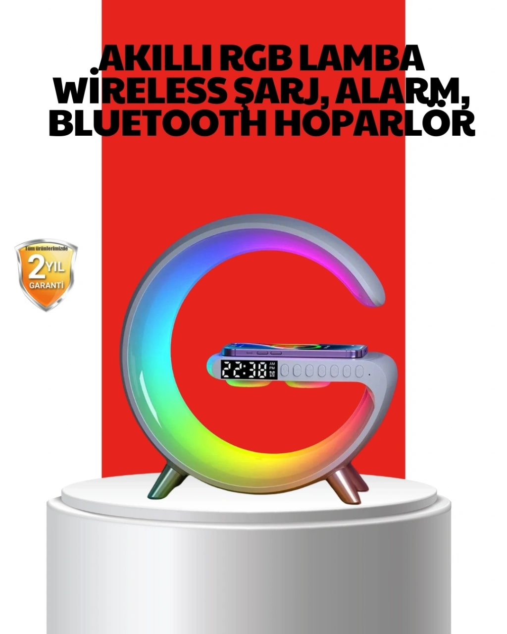 Kablosuz Şarjlı Atmosfer Lambası Bluetooth Hoparlör Ve Akıllı Alarm Özellikli
