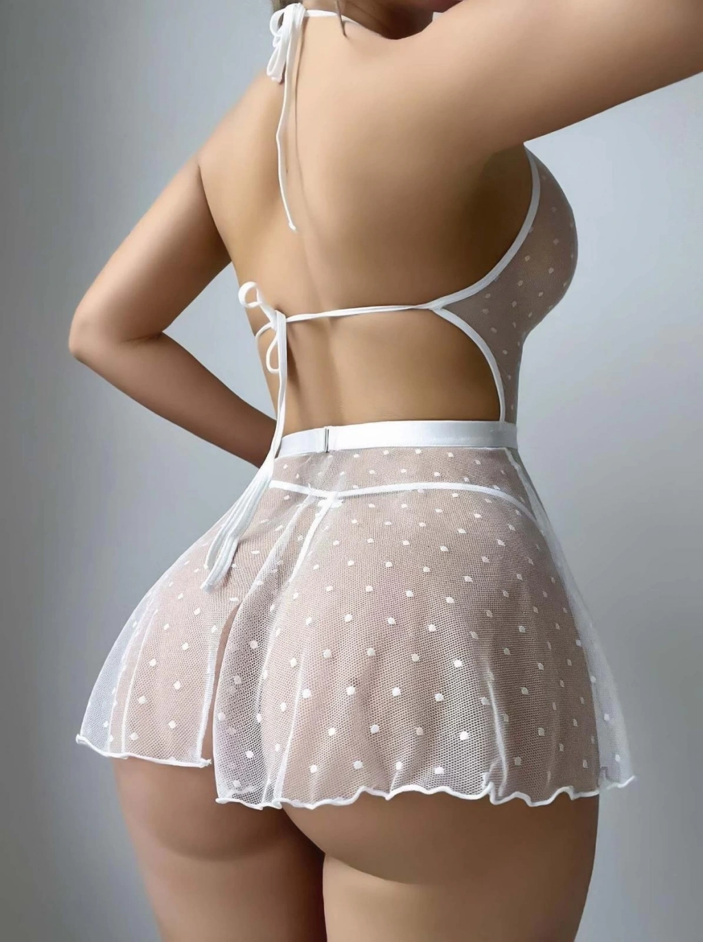 Kadın Beyaz Fantazi Gecelik Tül Nokta Desenli 2207