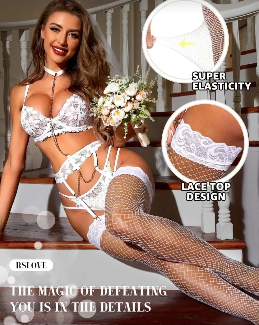 Kadın Beyaz File Silikonlu Jartiyer Çorabı