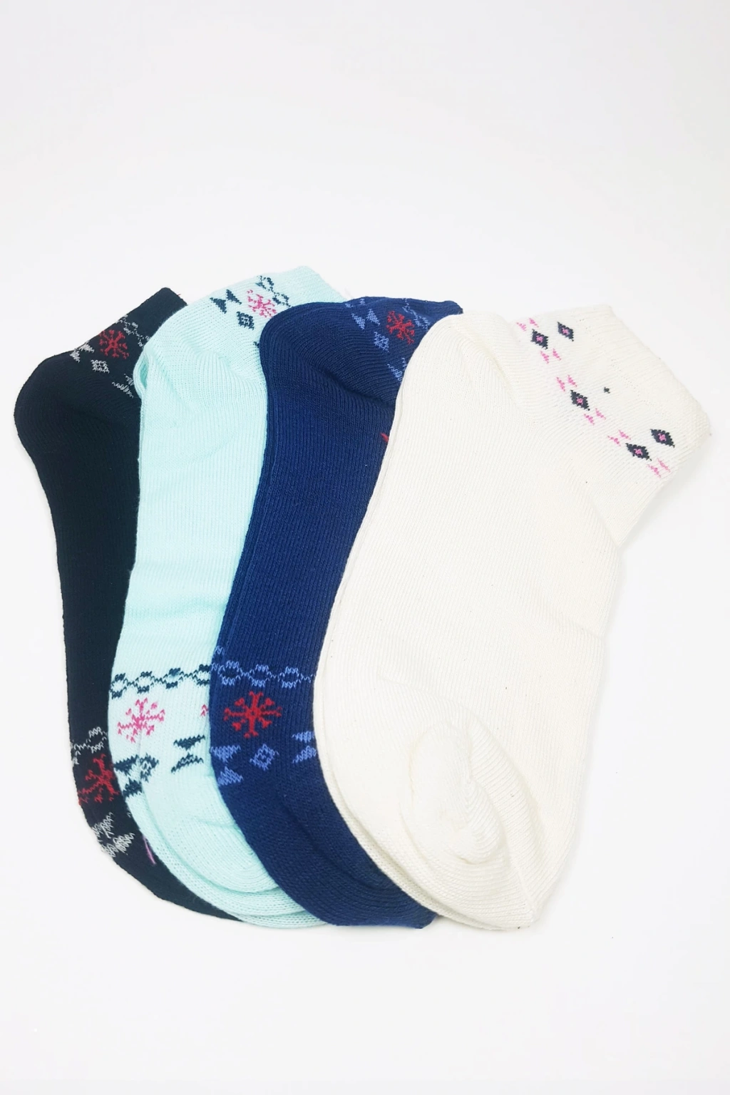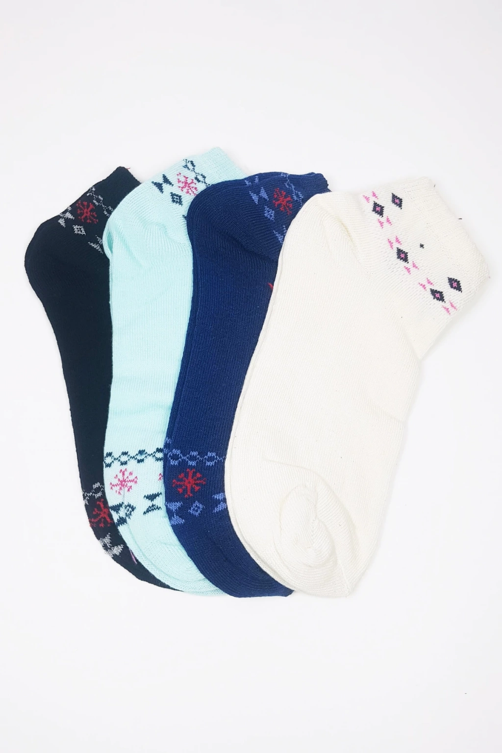 3 Çift Geometrik Desen Renkli Pamuklu Kadın Bilek Çorap