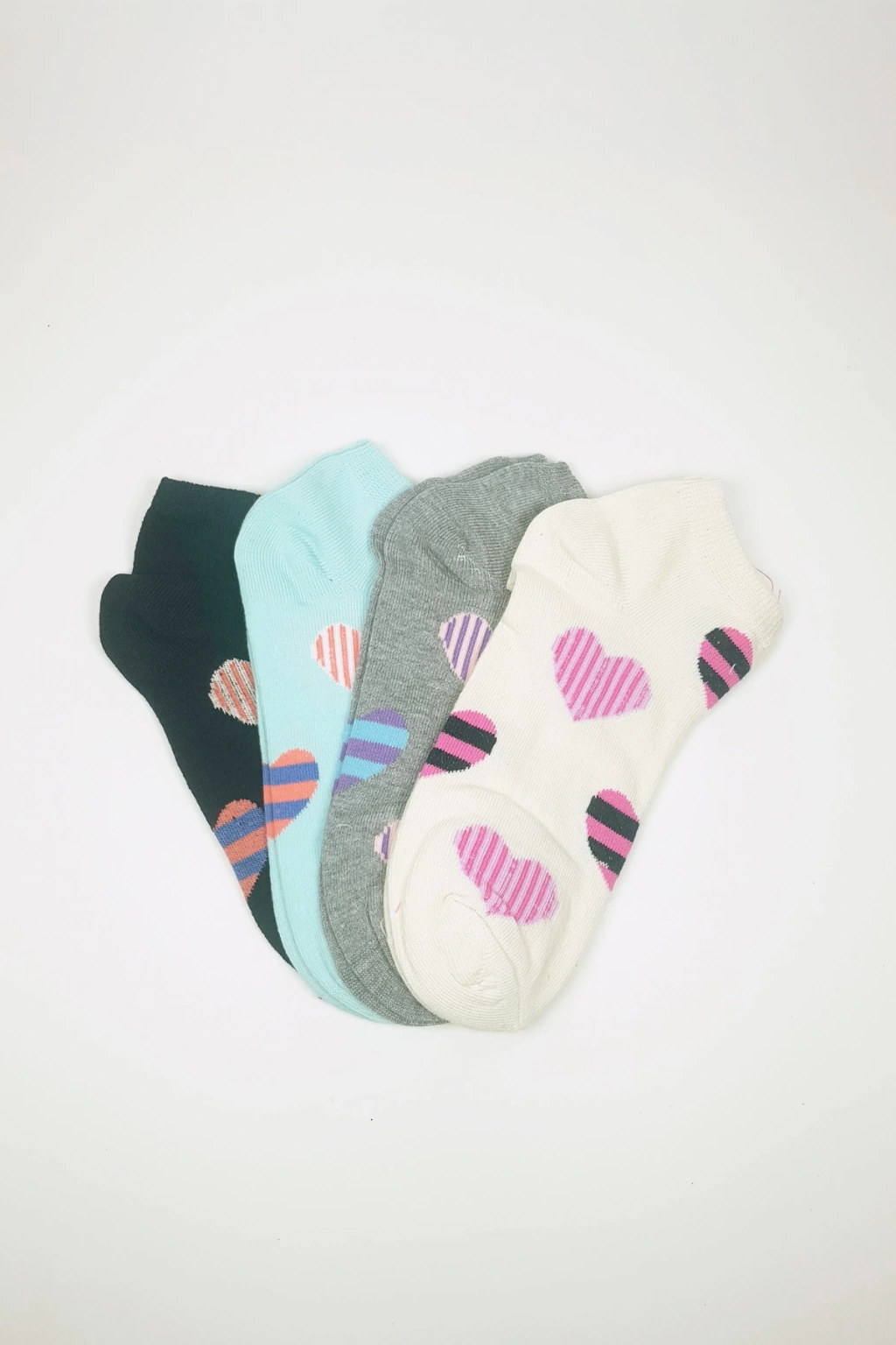 Kadın Bilek Çorap Yazlık Pamuklu Yumuşak Kalp Desen 4 Çift