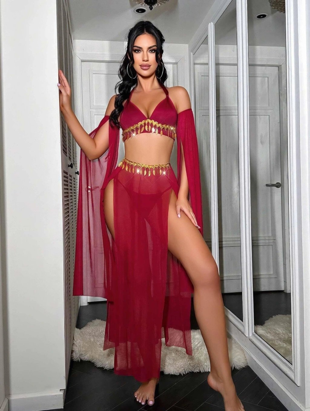 Kadın Kırmızı Dansöz Elbisesi Fantezi Kostüm 2266