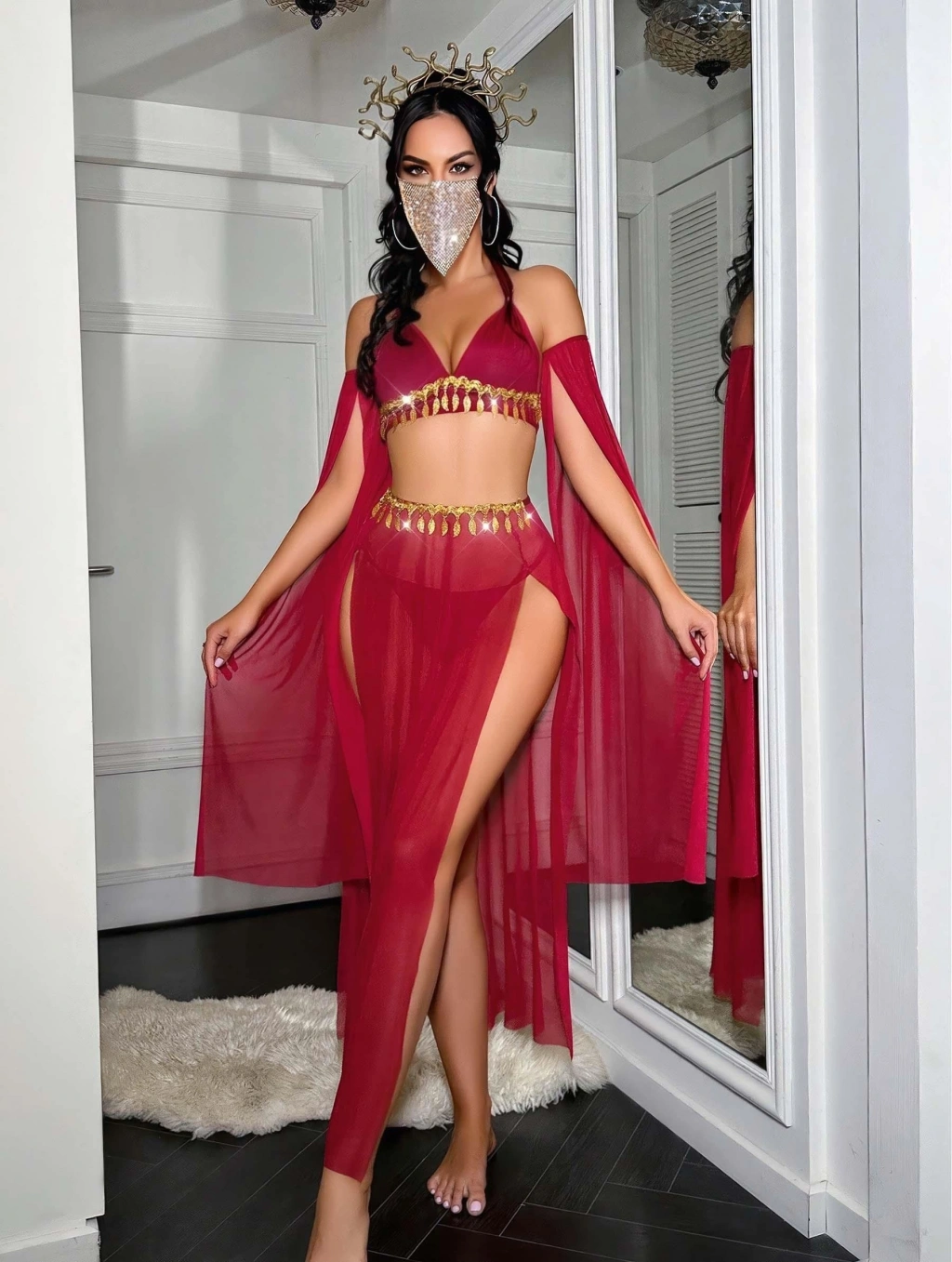 Kadın Gold Pul Detaylı Fantezi Kostüm 2268