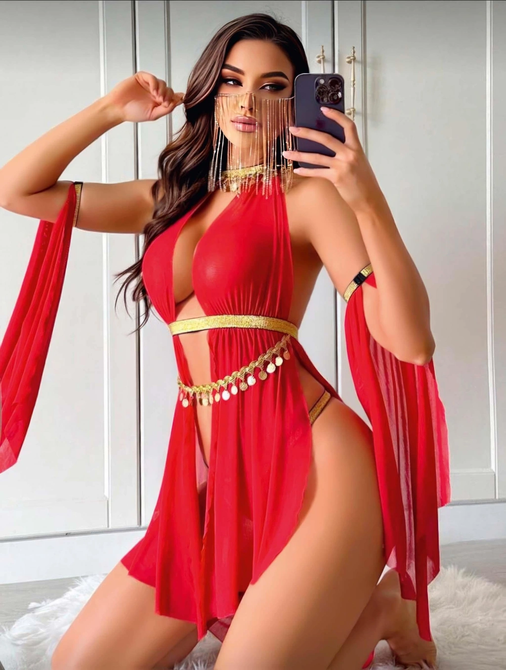 Kadın Kırmızı Dansöz Elbisesi Fantezi Kostüm 2266